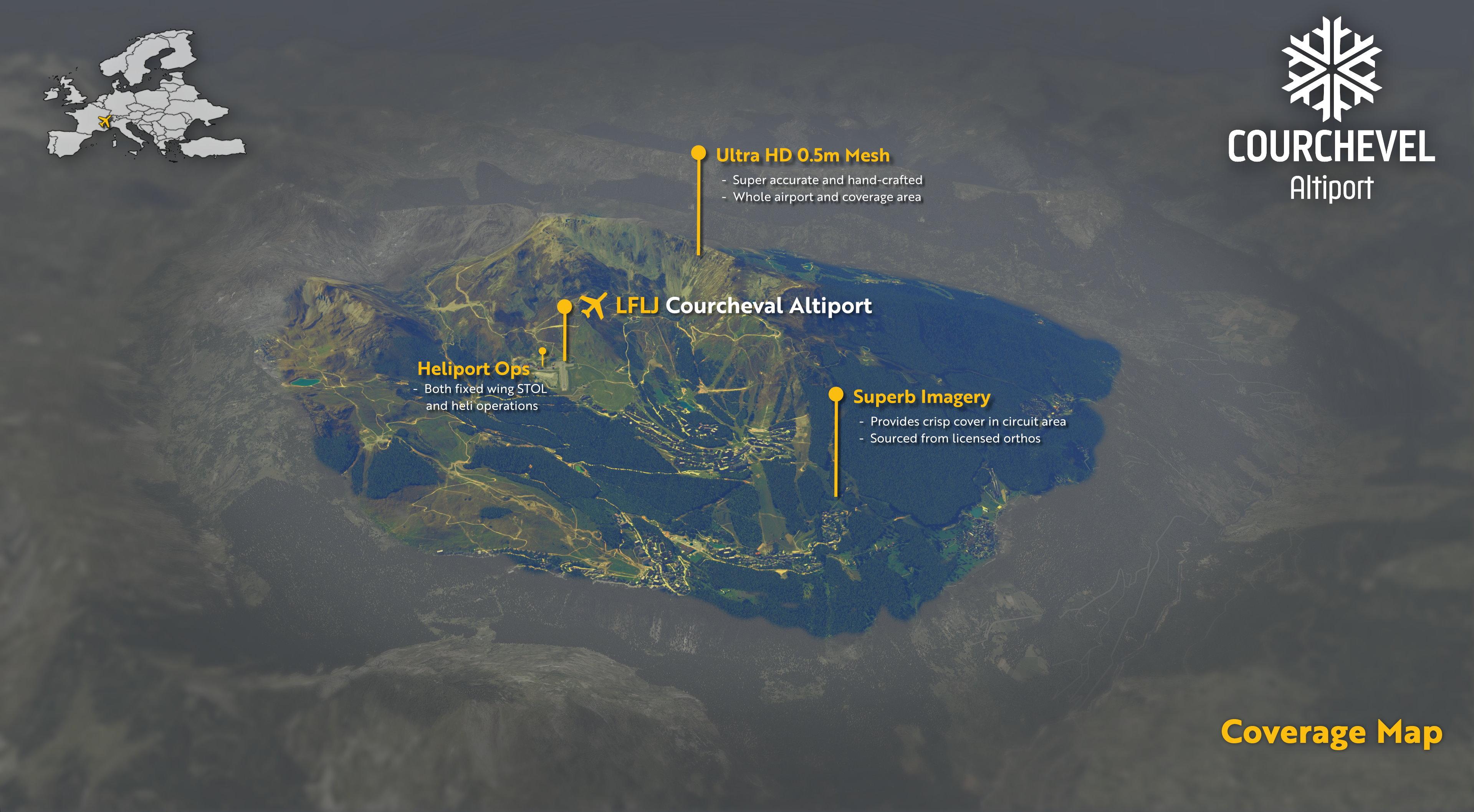 • Airport developed with close connection with the official Courchevel airport personnel with an outstanding level of detail and accuracy