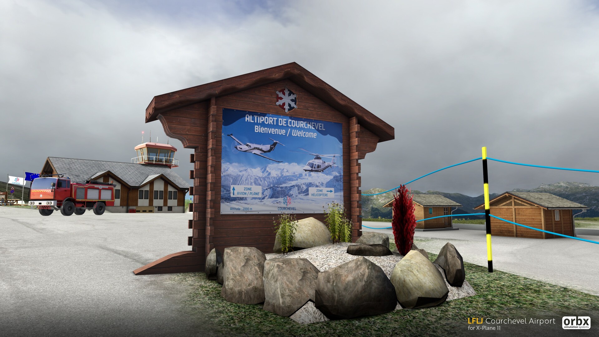 The altiport is famous for it’s sloped runway, which is represented in the X-Plane version, alongside the following features: