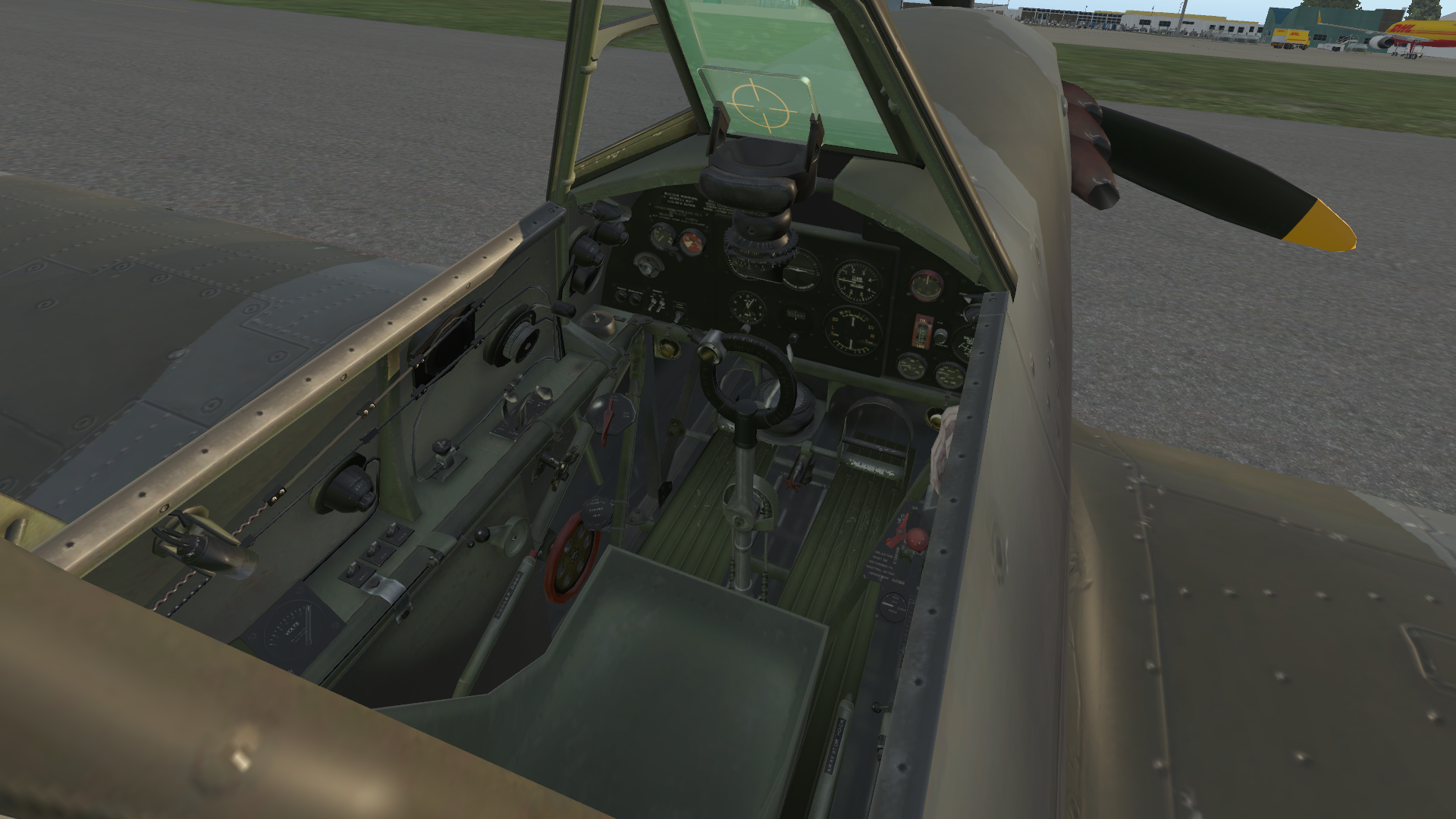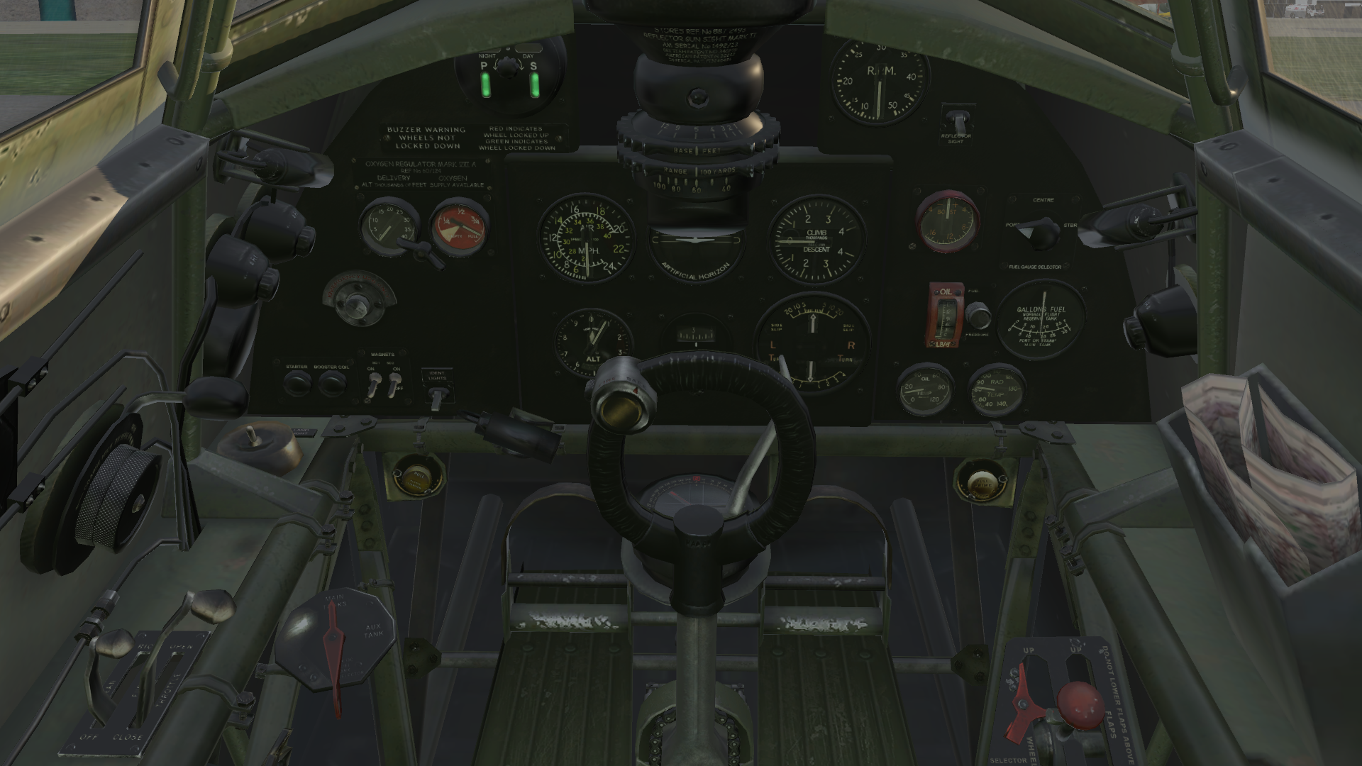 Taxiing this plane is much like one would imagine with the stiffness of the gear being pulled along the ground by the torquey engine driven prop up front and can be a little tricky without practice. There is a quirk however where one needs to lean back slightly on the stick to really plant the tailwheel down for better control. For take-off, the pilot needs to be gentle when increasing the throttle during the roll down the runway or else the torque from that heavy V-12 will pull you off the runway; a trait very common of fighters of this generation but not as harsh as the Spitfire or later Messerschmitt.