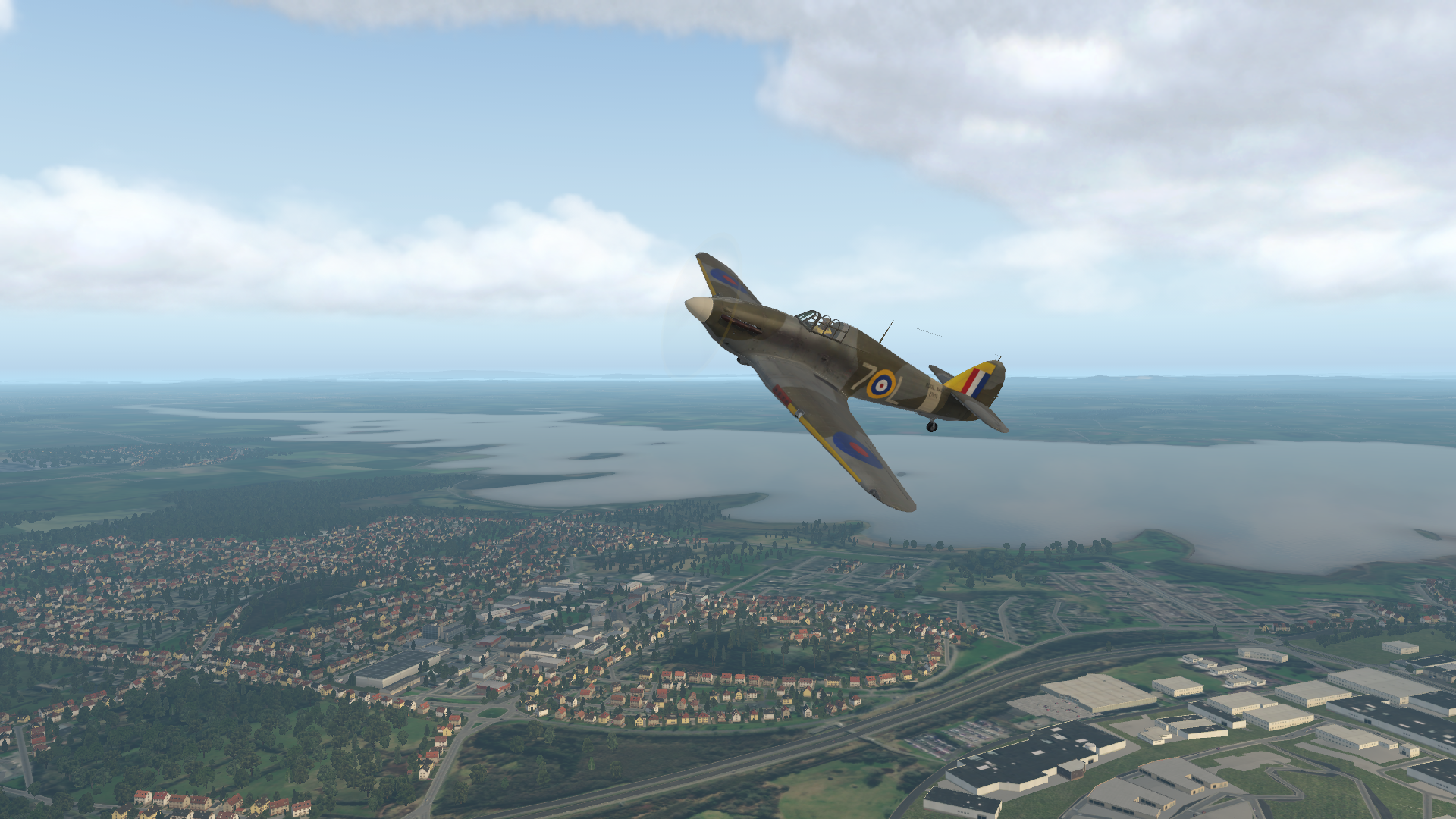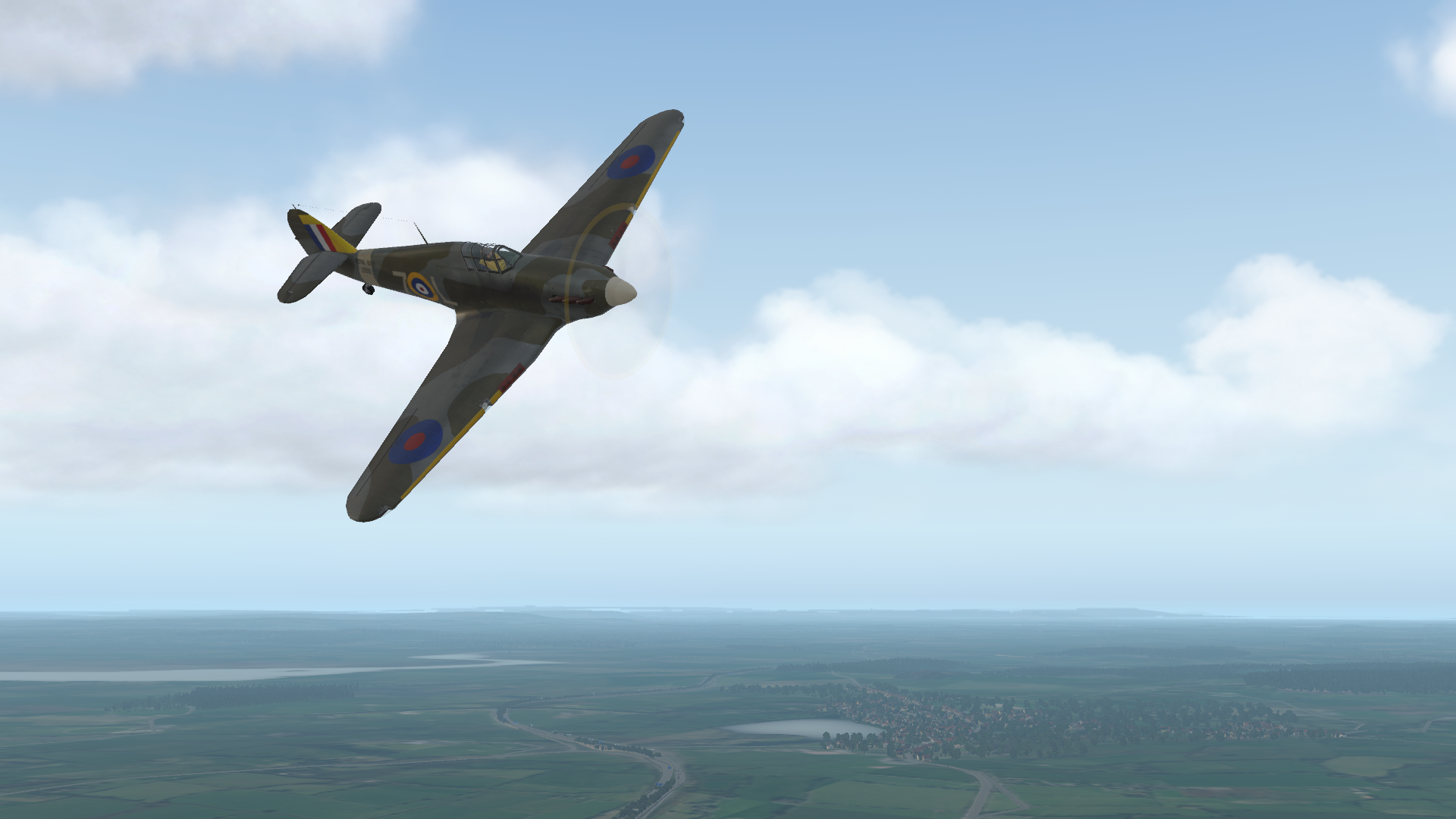 Once you are in the air, the Hurricane feels incredibly natural and performs aerial manoeuvres with an admirable ease, as the real plane did. Naturally, it’s liable to drift and wander while flying straight but that is of course, like all fighters of this age, to be expected. Lowering the throttle while descending can be a little disorienting, seeming like the engine is in a state of runaway, but this is just the windmill effect in action and it is present in the Hurricane.