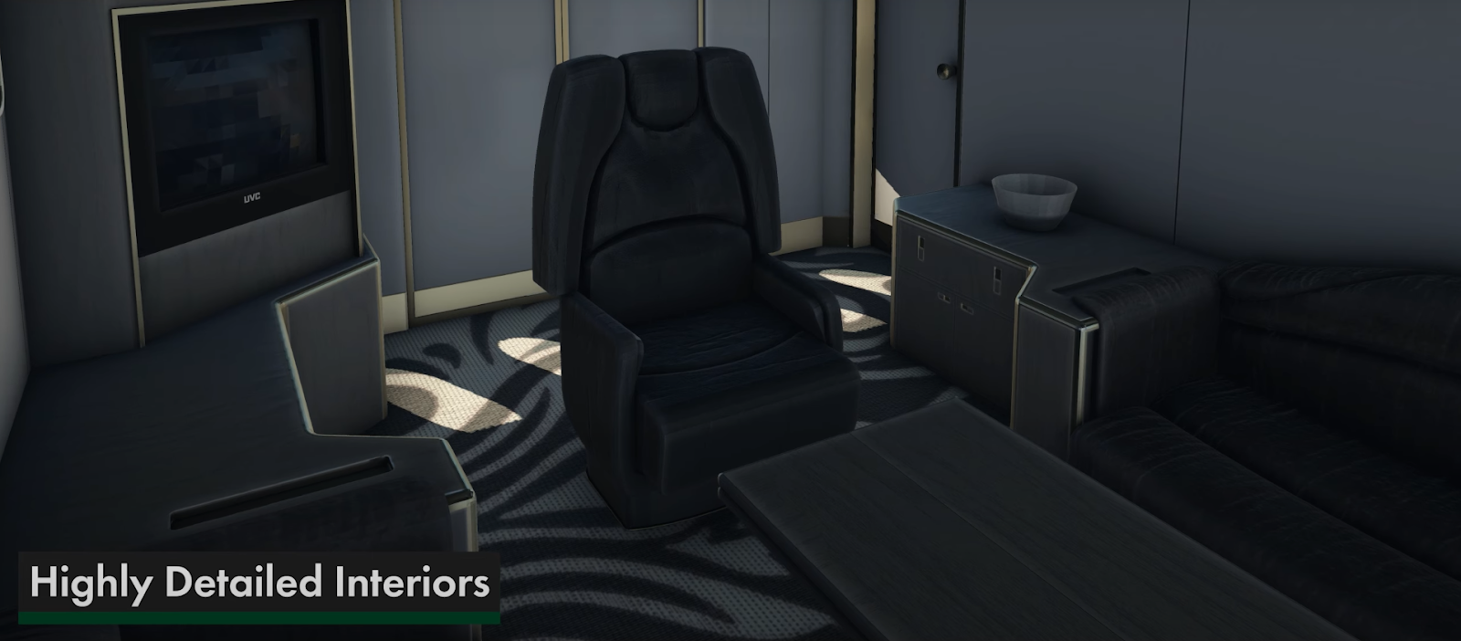 Interior wise, iniSimulations also showcased the “High Detailed Interior”. Specifically, the aisle between rooms and the office space onboard the A310 ACJ. We can expect the same quality on both the Passenger and Freighter variants.