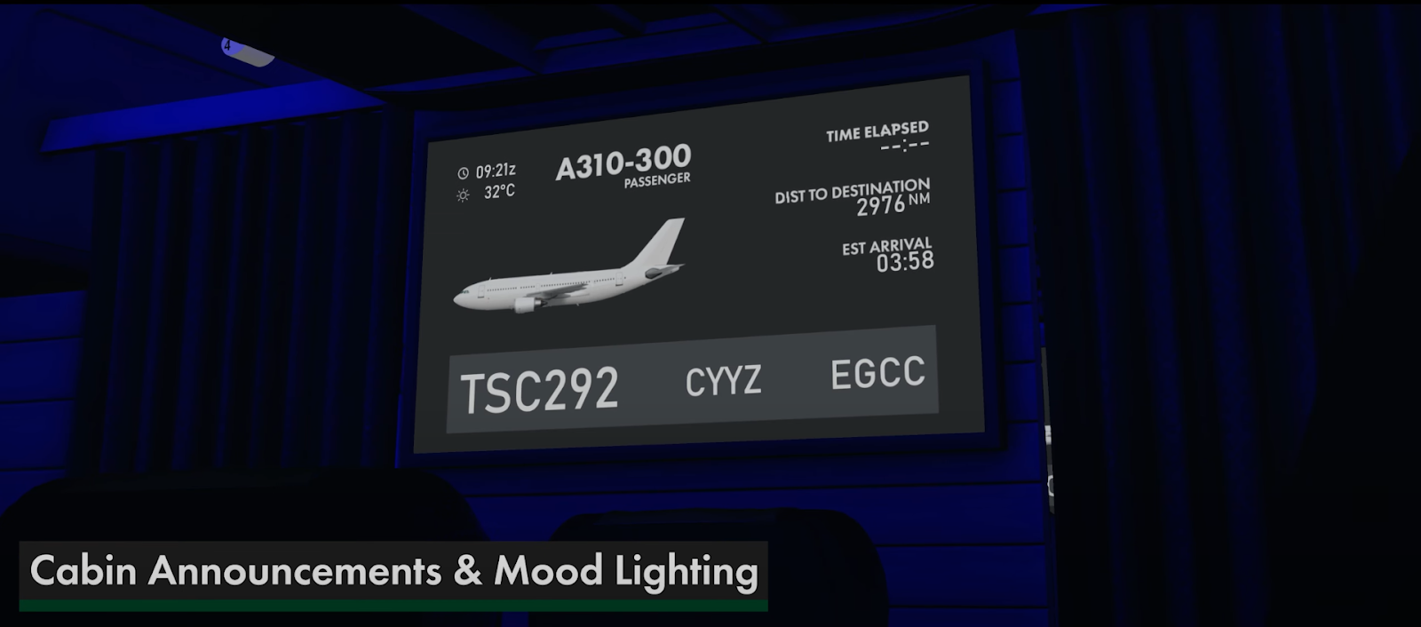 The 2-minute long video showcased the main features that will be included in iniSimulations A310-300 ON THE LINE. The video started with some panoramic shots of the exterior model of the aircraft exhibiting the high detailed PBR textures. Next came a shot of the inside of the aircraft showcasing the Cabin Announcements and Mood Lighting. With that, we could see the animated TV screens displaying data straight from the sim.