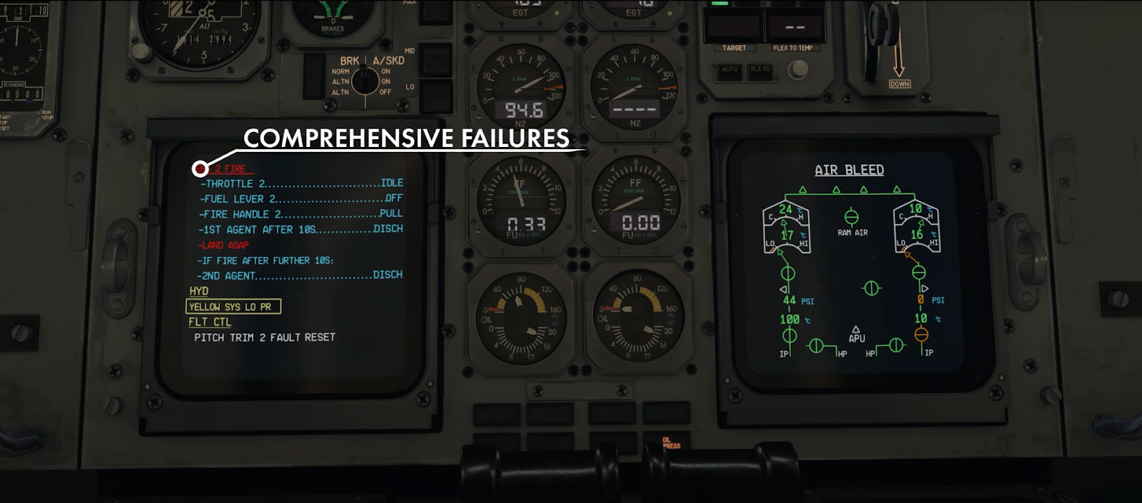 A new feature that was not included in the A300 was “Comprehensive Failures”. The trailer presents a Royal Jordanian Cargo having an engine fire, with an animated flame and the systems displaying the actions to extinguish the fire, this is a great feature for simmers to test their skills under pressure.