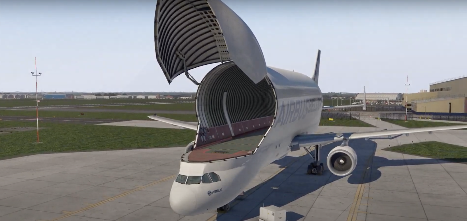However, iniBuilds have not forgotten about what makes the Beluga so iconic, and thus with the release of the aircraft have included a highly detailed cargo bay with an operable service panel. As well, custom loading options have been added, allowing users to carry various unique items, such as tails of aircraft, space parts, and more.