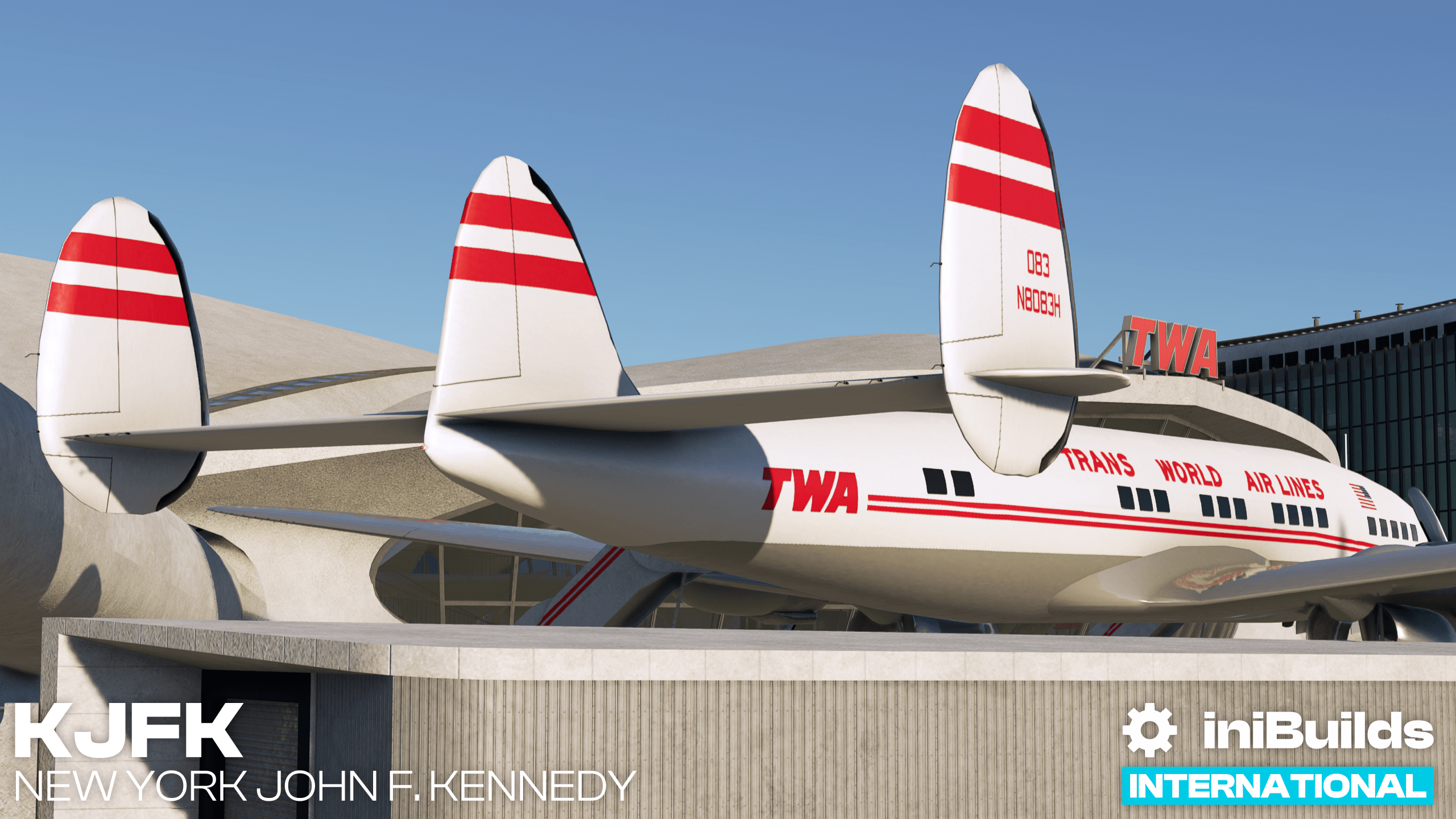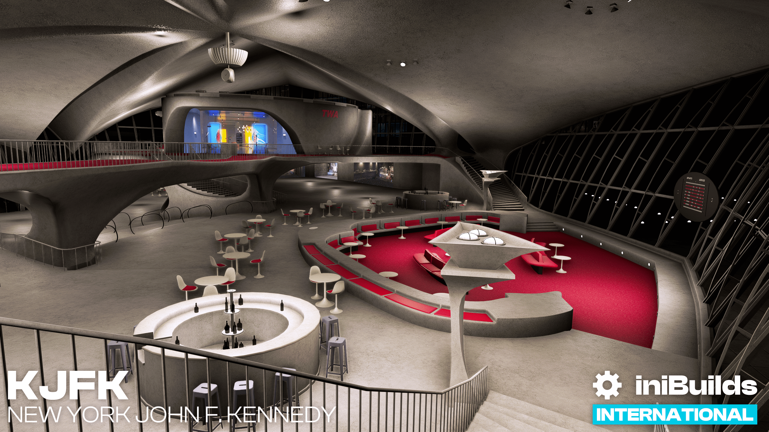 The scenery will feature highly detailed models of all airport buildings, objects, and surroundings, with hand-crafted ground poly, crisp textures, accurately modeled and positioned dynamic lighting, custom static aircraft, custom jetways (10+), true-to-life airport landside recreation, realistic taxi signage, up to date airport layout, fully animated JFK AirTrain between terminals, LOD optimization for optimal performance, use of the latest MSFS SDK features, and full iniManager compatibility to configure the scenery for the best performance possible. They also highlight an accurate rendition of the TWA Hotel with an intricately detailed interior and the Constellation aircraft in TWA colors.