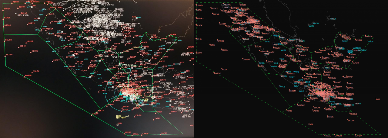 Jakarta’s real atc sector (left), versus IVAO’s new client sector (right)