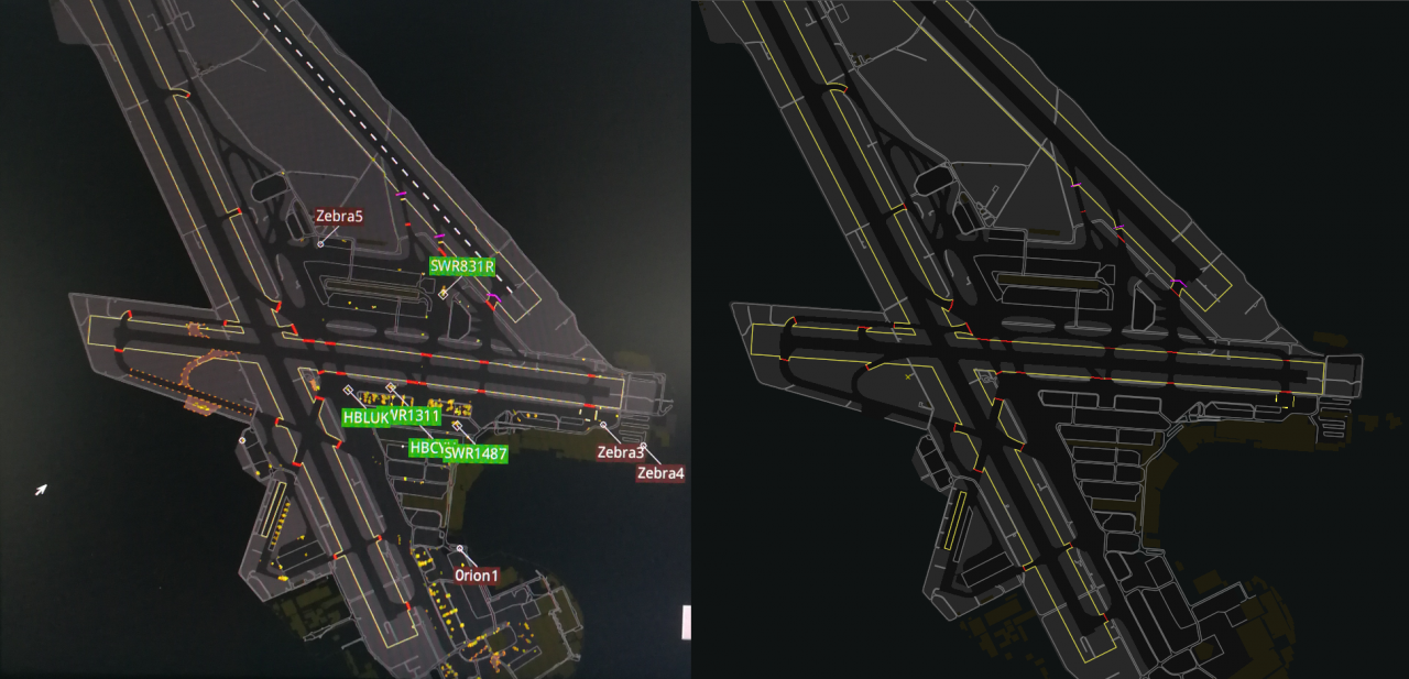Zurich Airport (LSZH) real sector (left), versus IVAO’s new client sector (right)