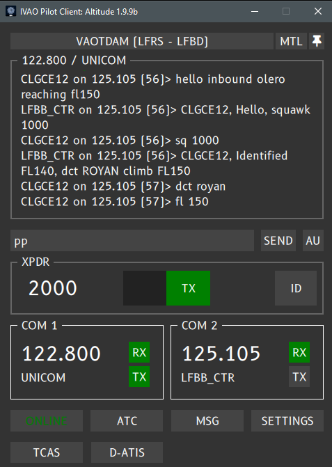 • Implemented enhanced datalink ATIS, can manage ATIS in separate window