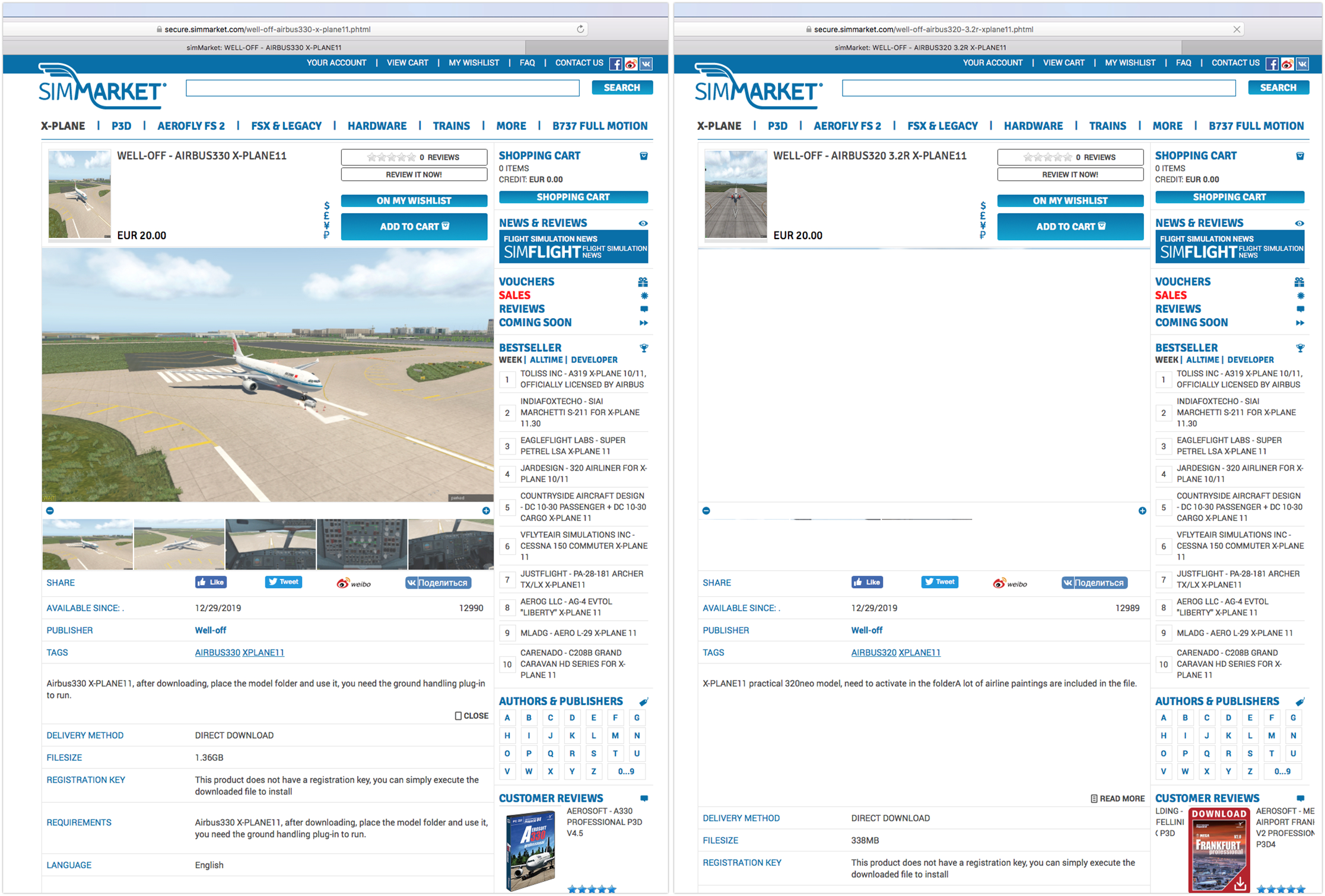 Earlier today, two new Airbus airliners appeared on the simMarket store. These aircraft were developed under the name ‘Well-off’, and both retailed for €20.00.