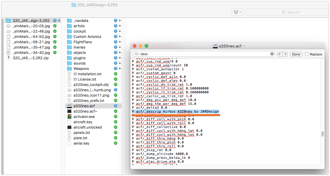 “The hacked version contains the original aircraft, textures and object files (with link to JARDesign in description acf tags) and hacked plug-in files with malicious code embedded,” Evgeny Romanov told us.