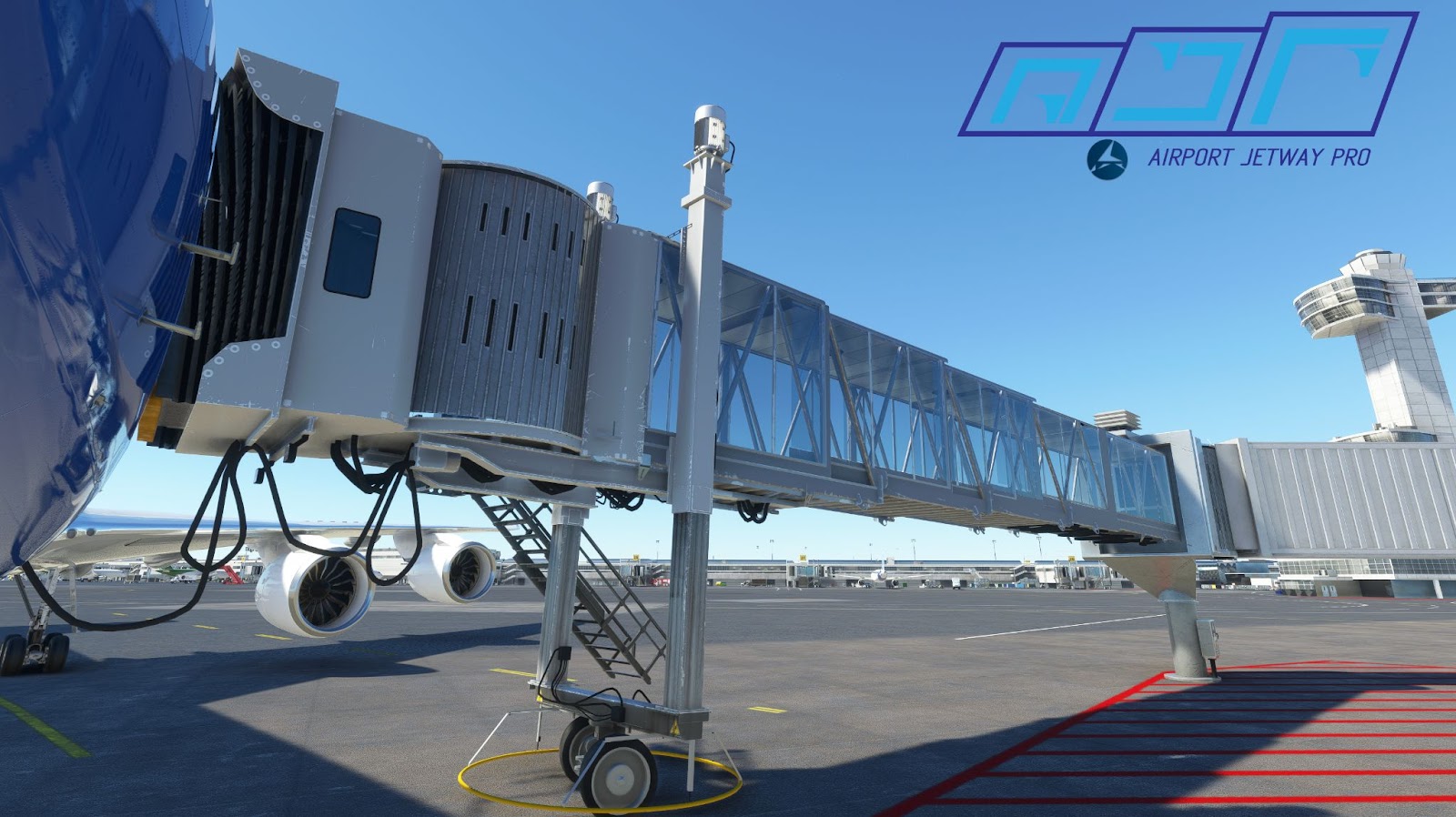 LatinVFR has released JetwayPro for Microsoft Flight Simulator. Similar to its indirect X-Plane 11 counterpart “WorldJetways” developed by Stairport Sceneries, this visual add-on improves the current jetway system and replaces the everyday look with a glass jetbridge at all default airports.