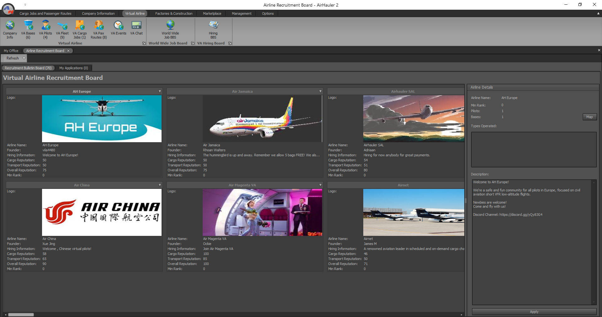 “If your management skills are needed in the boardroom, recruit other pilots to fly jobs for you and keep track of them all with the AI pilot system. Detailed Map views showing all the airports in X-Plane will help you keep tabs on available jobs and the locations of your bases and fleet, and you can also view the live locations of other online Air Hauler 2 pilots.”