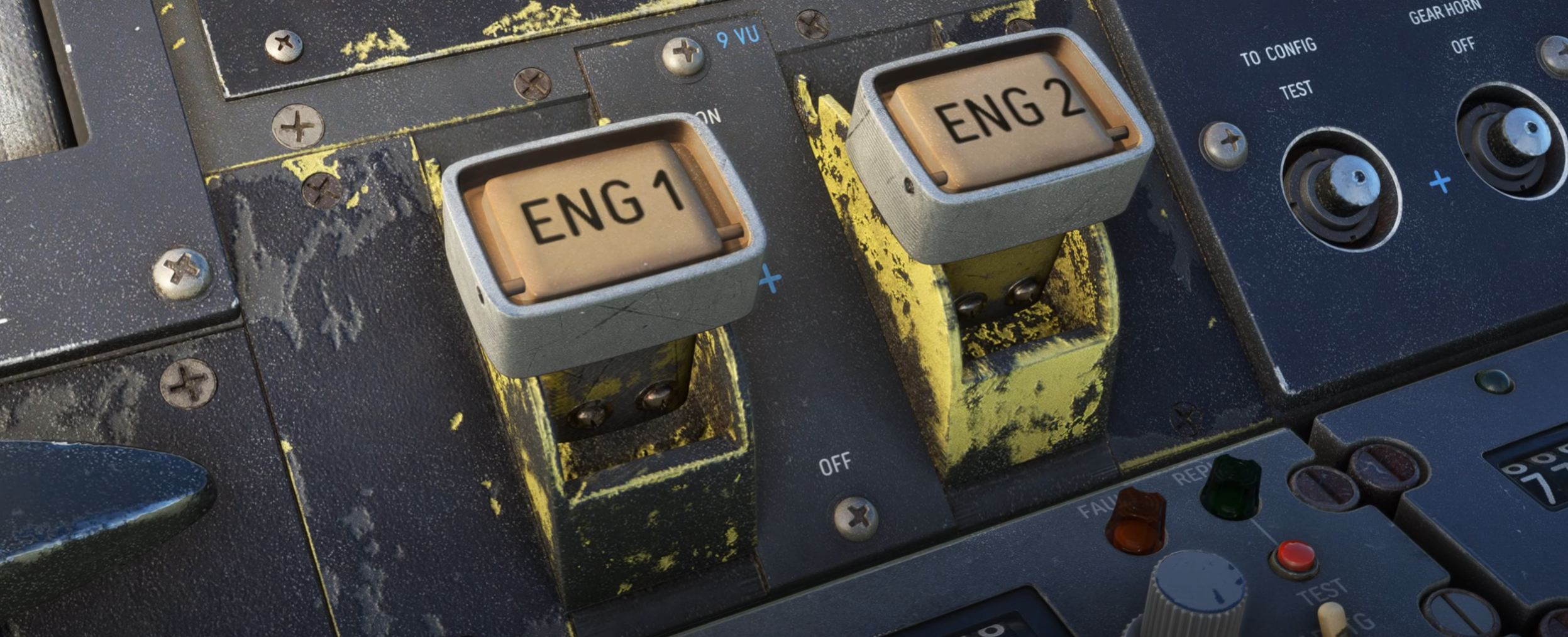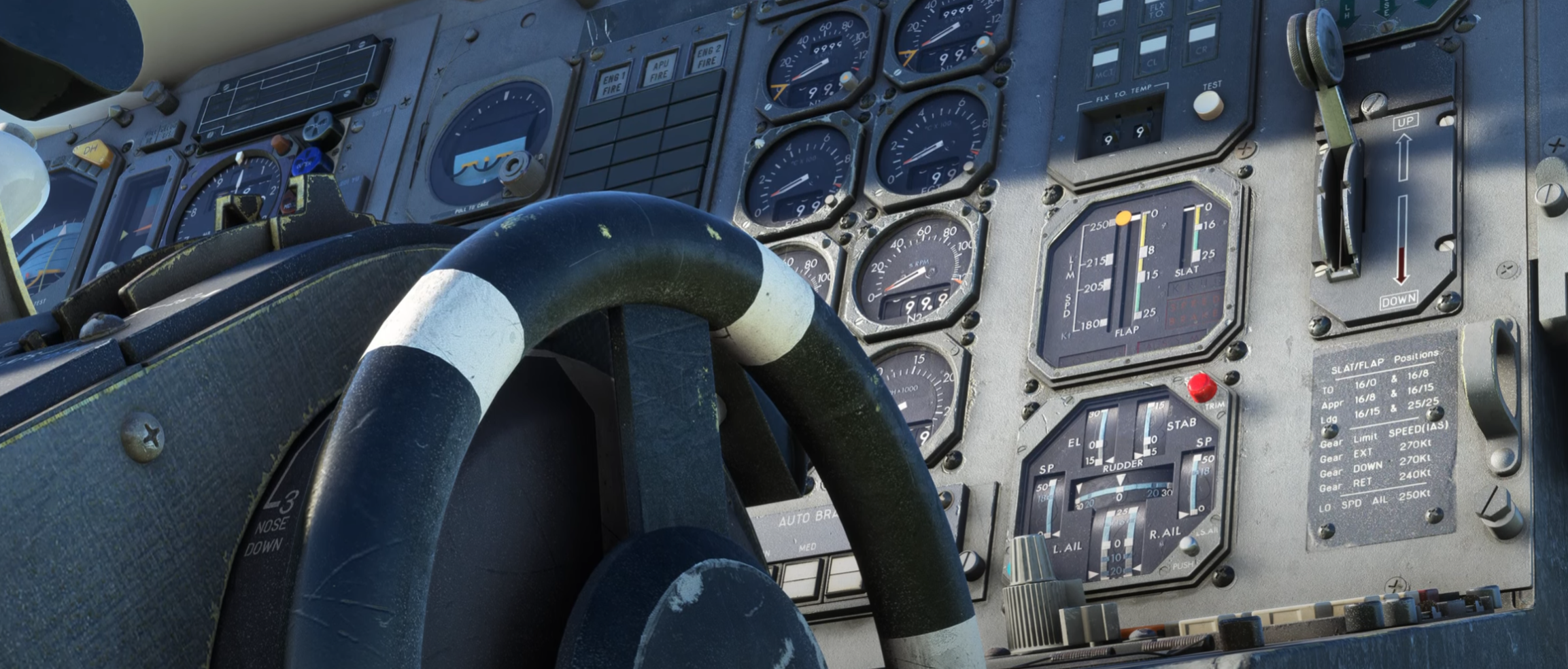 The cockpit will feature all three positions (pilot, first officer, and flight engineer), realistically reproduced, texturized (4K and 8K), and modeled with animated and functional switches, knobs, and levers.