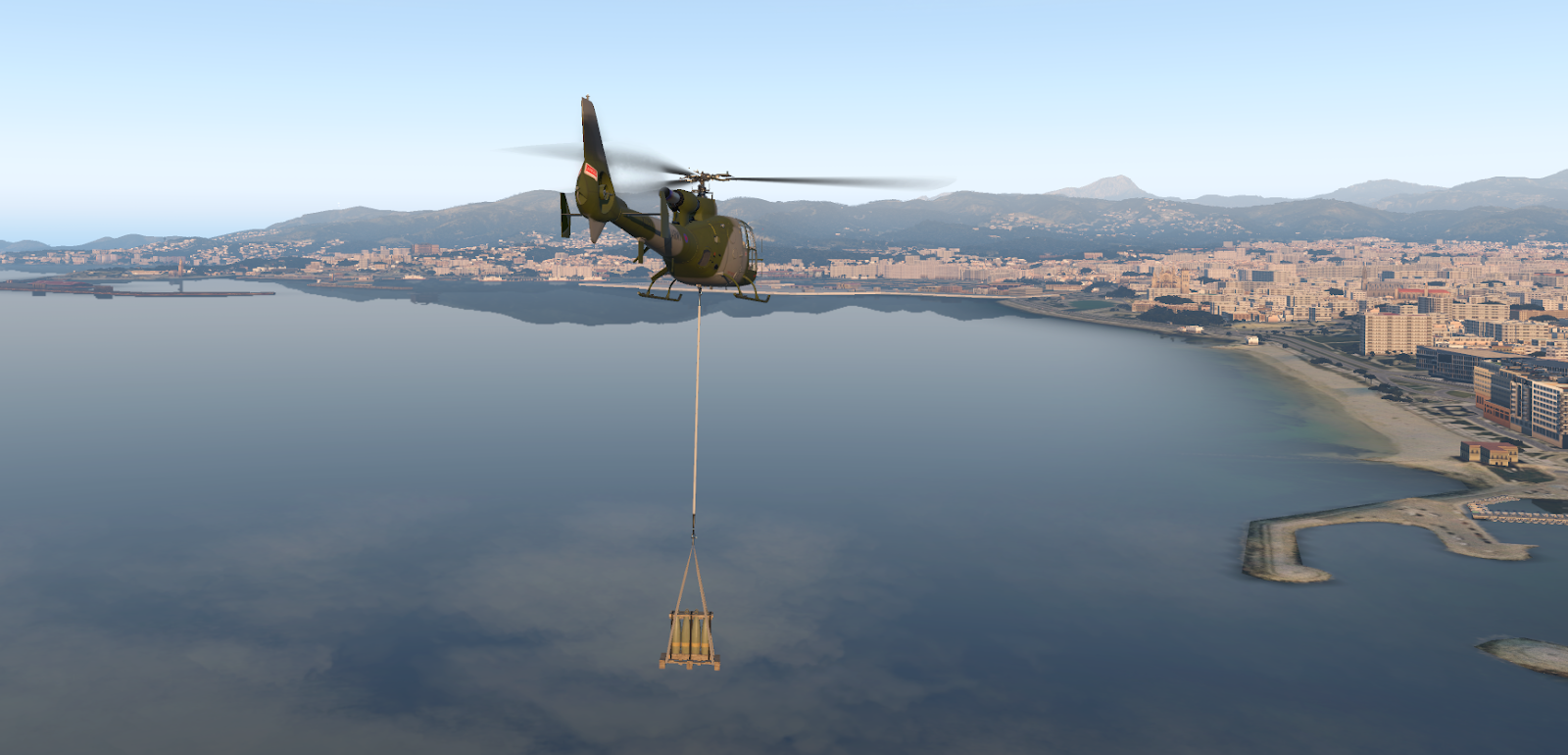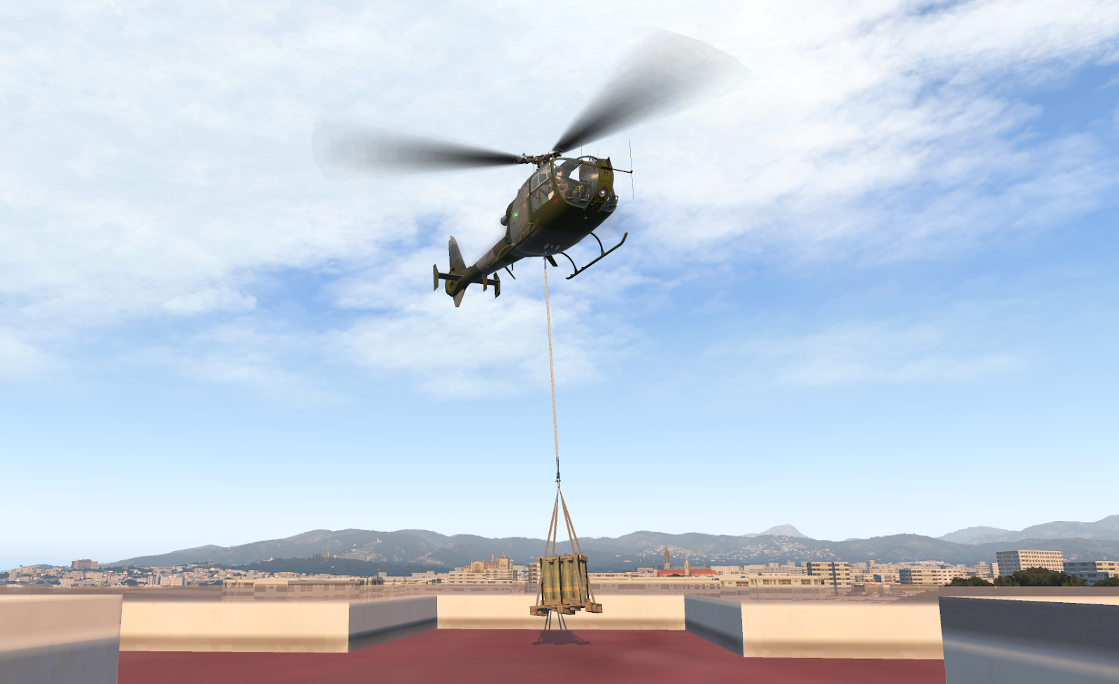 The Gazelle’s power can be put toward more than raw speed, too. Pilots will find two “cargo” switches on the center console; JRX Design have included a standalone (no additional plugins required) sling-load system that simulates a 400 kg palette of artillery shells dropped below the Gazelle belly hook on a 20 foot line. This cargo system, while not at as high a fidelity as some slung-load plugins, feels great and is a notable addition to a module that would have been perfectly competent without it.