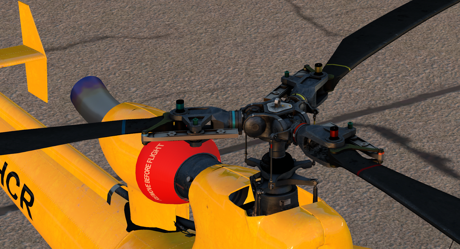 From angles like this the Gazelle is a slick, natural predator, and with missiles or the greebles of war attached it feels primed to pounce; it may have been more aptly named, in the British fashion, after some dominant cat. JRX Design have done justice to this exterior profile; from a distance my Gazelle photographs better than most aircraft in my library. In and outside of the Gazelle I am impressed by the 3D modeling. The rotor hub is especially beautiful, as it replicates at a high fidelity the meaty elegance of the real component’s engineering.