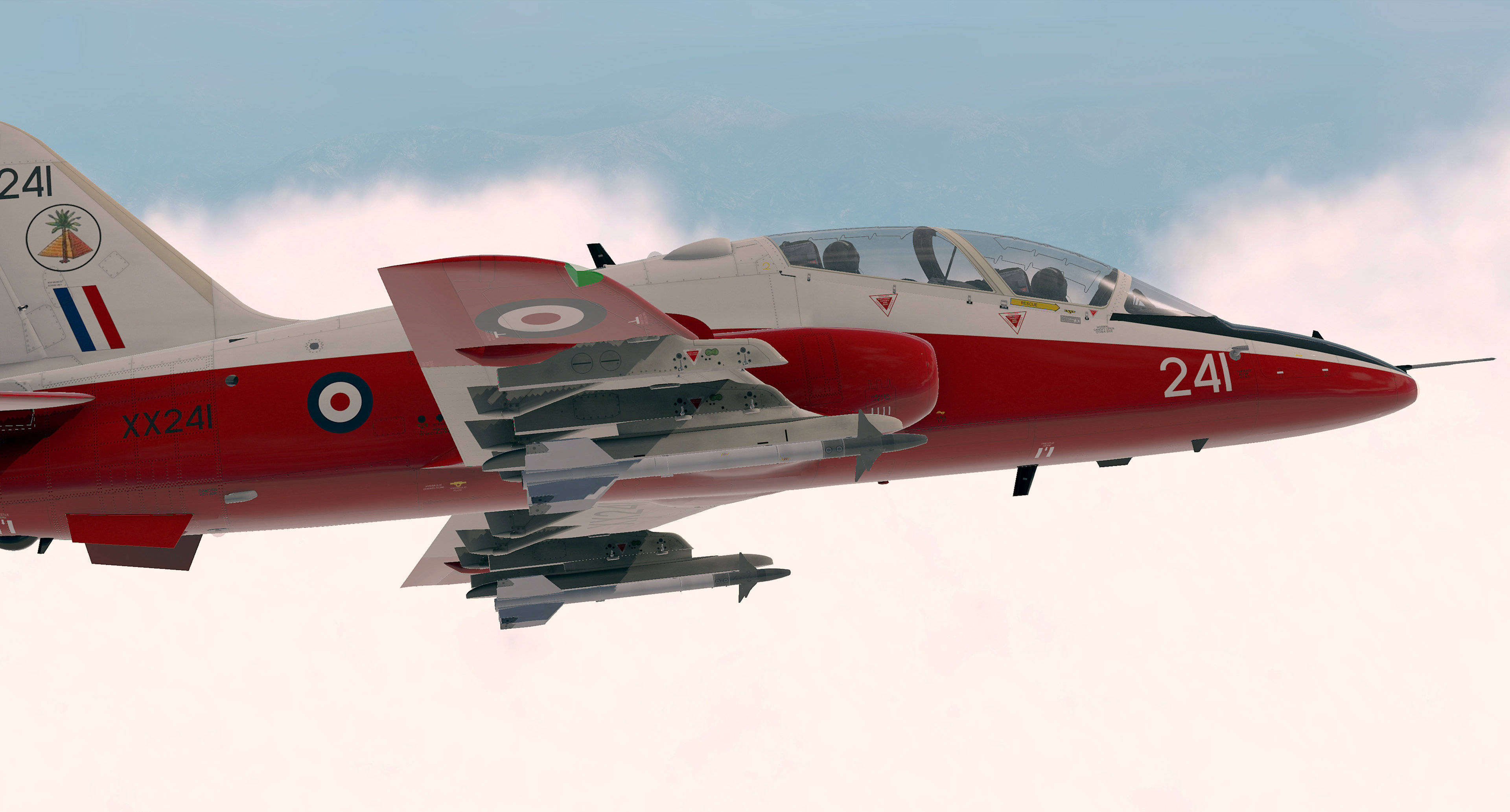The T1/A from JustFlight and Thranda Design will have fully realistic and functional weapons, including guided missiles, rockets and a 30mm ADEN cannon. The Hawk T1/A also features a smoke pod for Red Arrow-esce aerobatic displays. Also included in the package are custom FMOD sounds, PBR textures, and realistic flight dynamics based off of input from real-world Hawk T1 pilots.