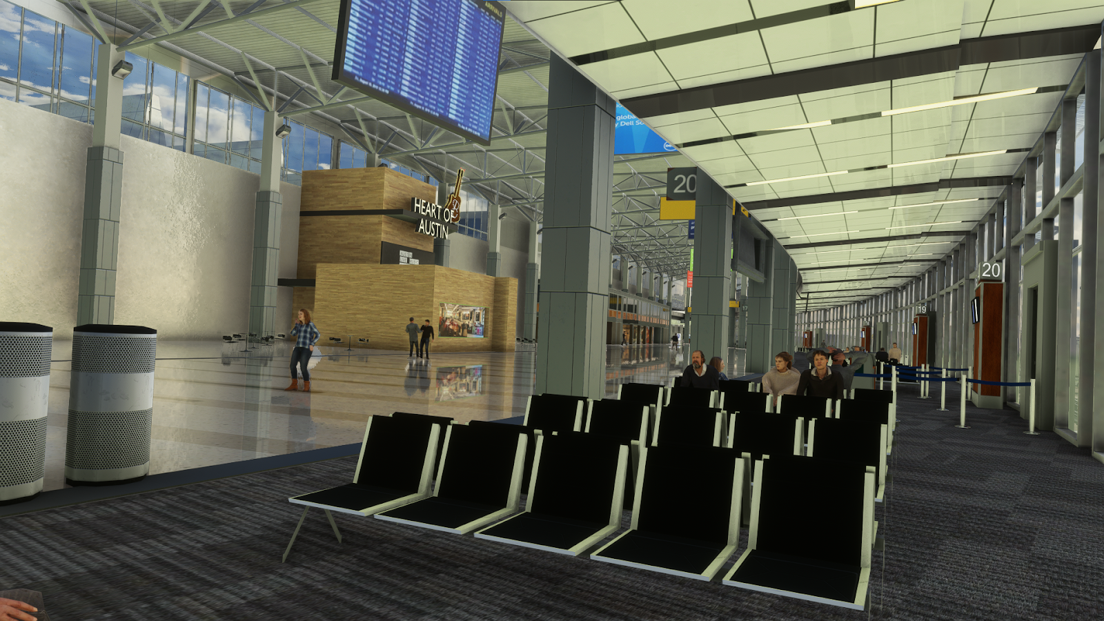 Earlier this week, scenery developer Dominic DesignTeam released their rendition of Austin–Bergstrom International Airport (KAUS) for Microsoft Flight Simulator. The product will bring the Texas airport to life with high quality models, customized objects such as signs and passengers, and detailed textures.