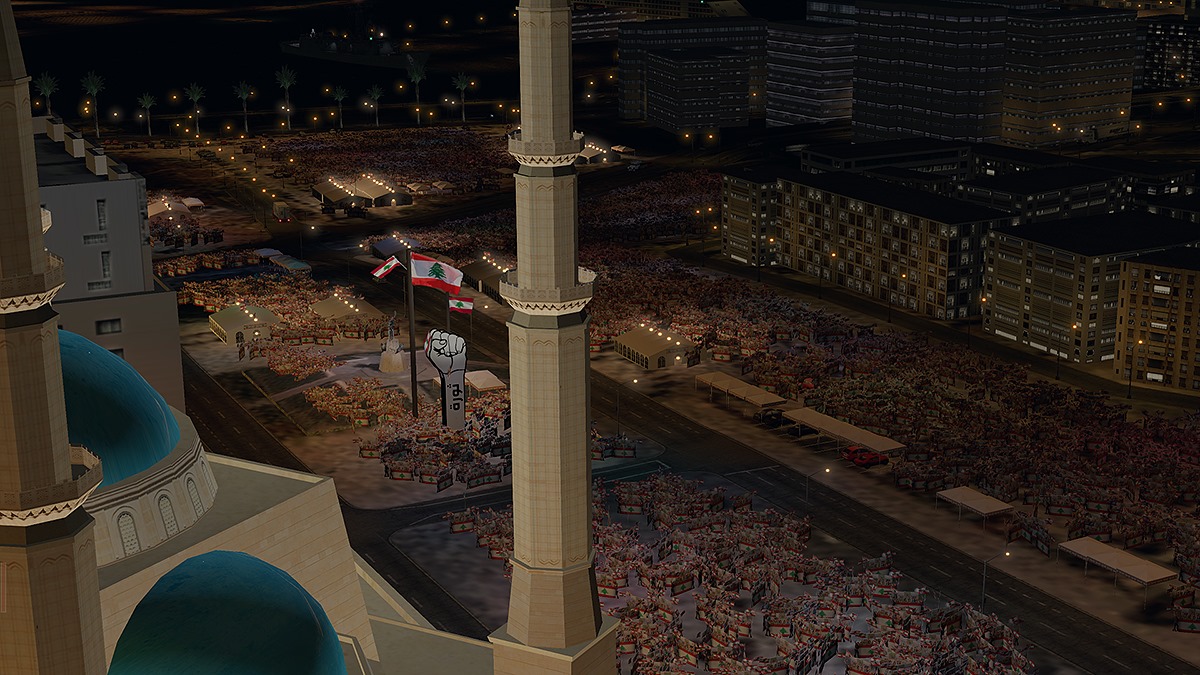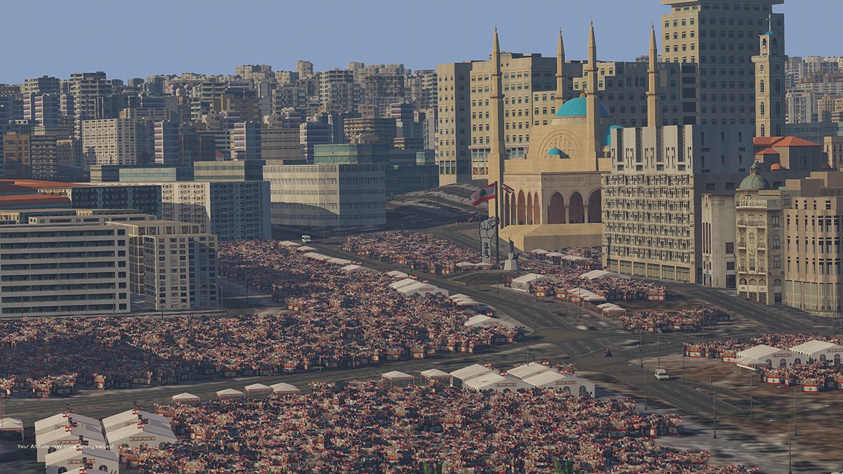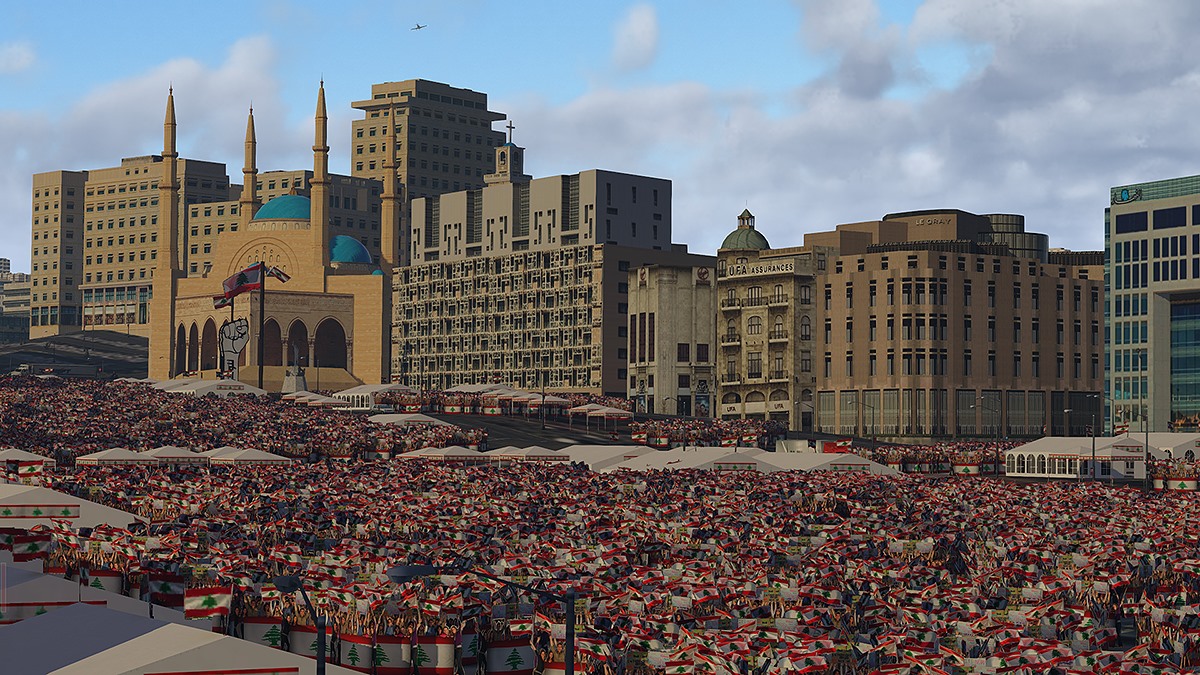 Now, in real life, the city of Beirut has been in some political turmoil. Due to this, protesters have crammed themselves into the streets of Beirut. Lebor Simulations has replicated this with an update to their scenery which includes people in the streets, banners, tents, and even blockades. Below is the result of the Demonstrations in X-Plane 11.