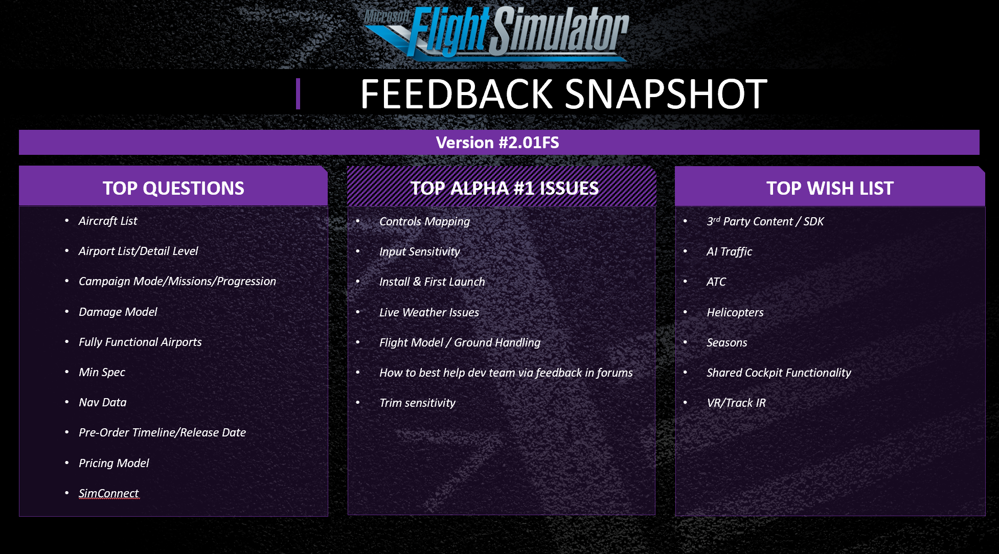 Additionally, new Development Roadmap (DR) and Feedback Snapshot updates were posted in the Insider Area.