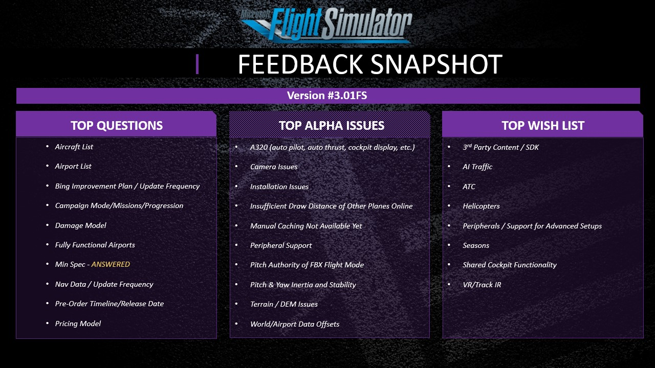 The latest update on Microsoft Flight Simulator, posted yesterday to the usual location of their website, touched on a variety of topics ranging from the next Alpha build to the latest feedback snapshot.