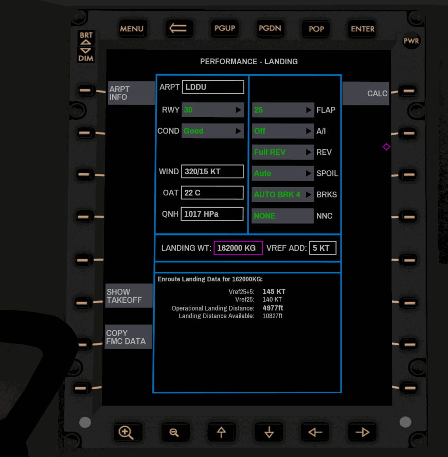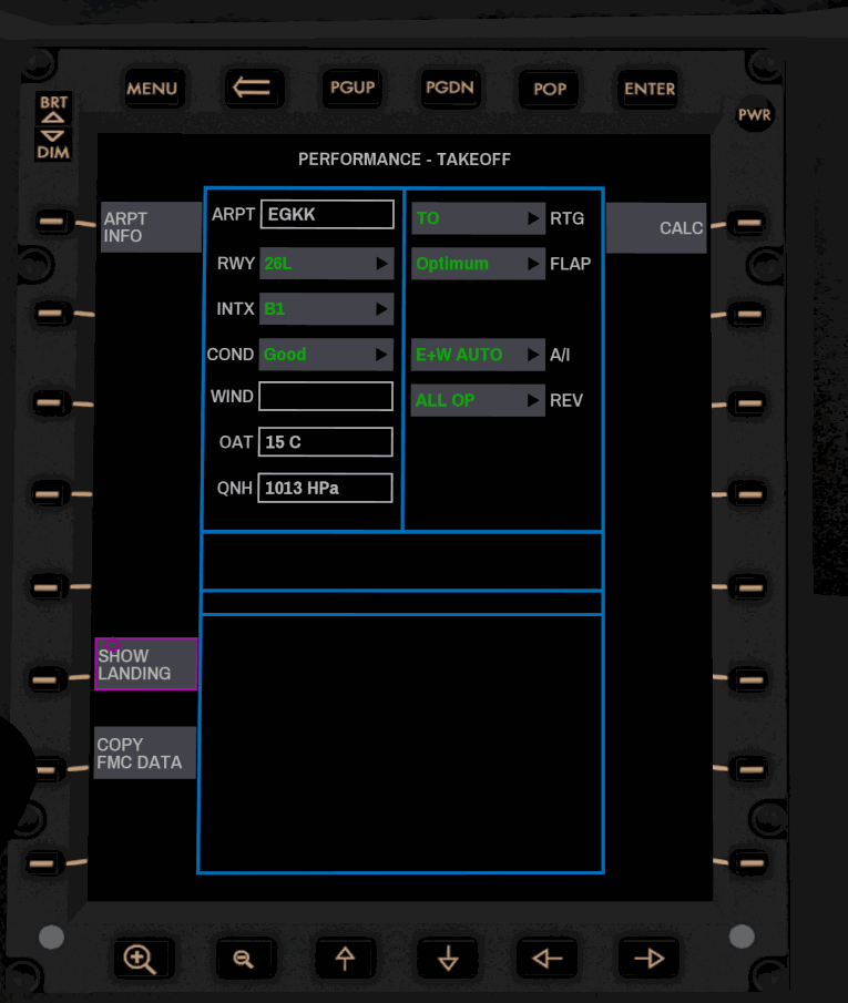 Included, is a new take-off calculator with many features, such as automatic flap selection for flaps 5, 10, 15, 17, 18, and 20, runway intersection support (for some airports only), and SEL TEMP (ATM) calculation.