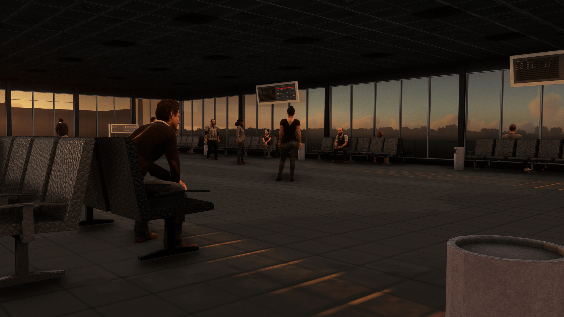 The scenery features an accurate rendition of the airport, with high-detailed PBR models of the terminals and their respective interiors (built with performance in mind), custom taxiway signs, 3D passengers, custom ground textures, and custom night lighting.