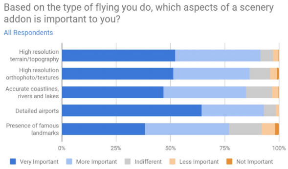 In the scenery department, detailed airports is the most important, but other factors including high-resolution terrain and textures followed very closely behind.
