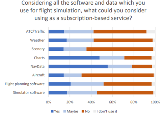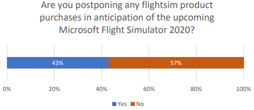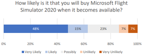 In terms of how likely users are to purchase MFS, the results suggest most people will do so when it comes out, and that 43% of users have stopped buying flight simulation addons in favour of waiting for MFS.