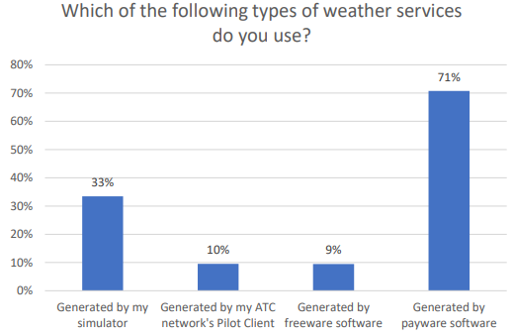 Most users prefer payware software to generate weather, whilst a third looked to that included with the simulator to do the job.