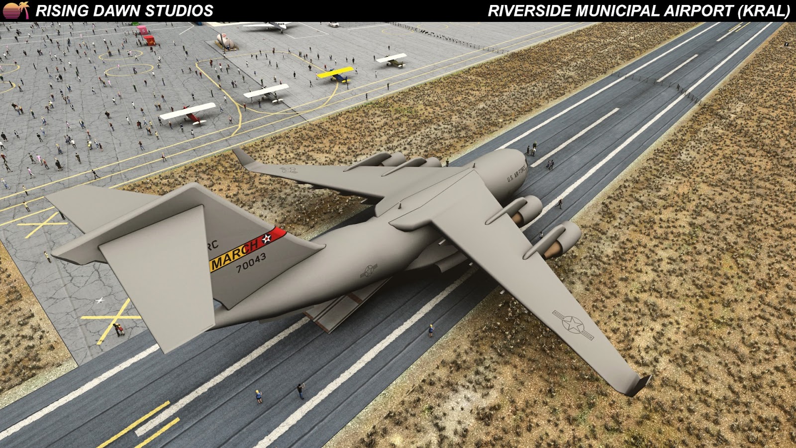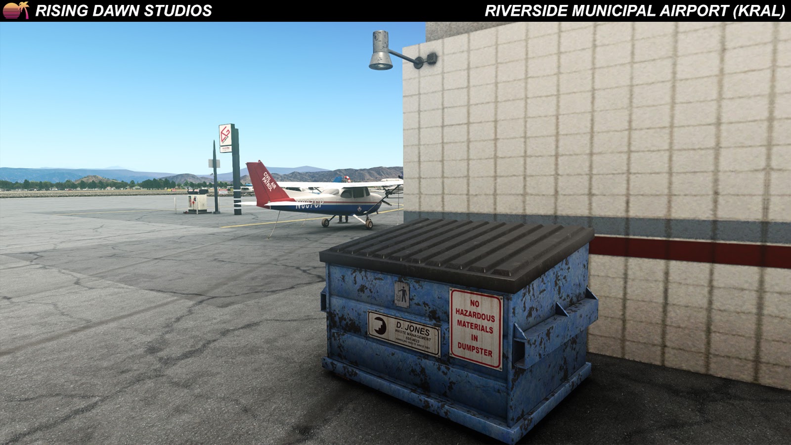 On a Facebook post, Rising Dawn Studios has announced the imminent release of their Riverside Municipal Airport (KRAL) scenery.