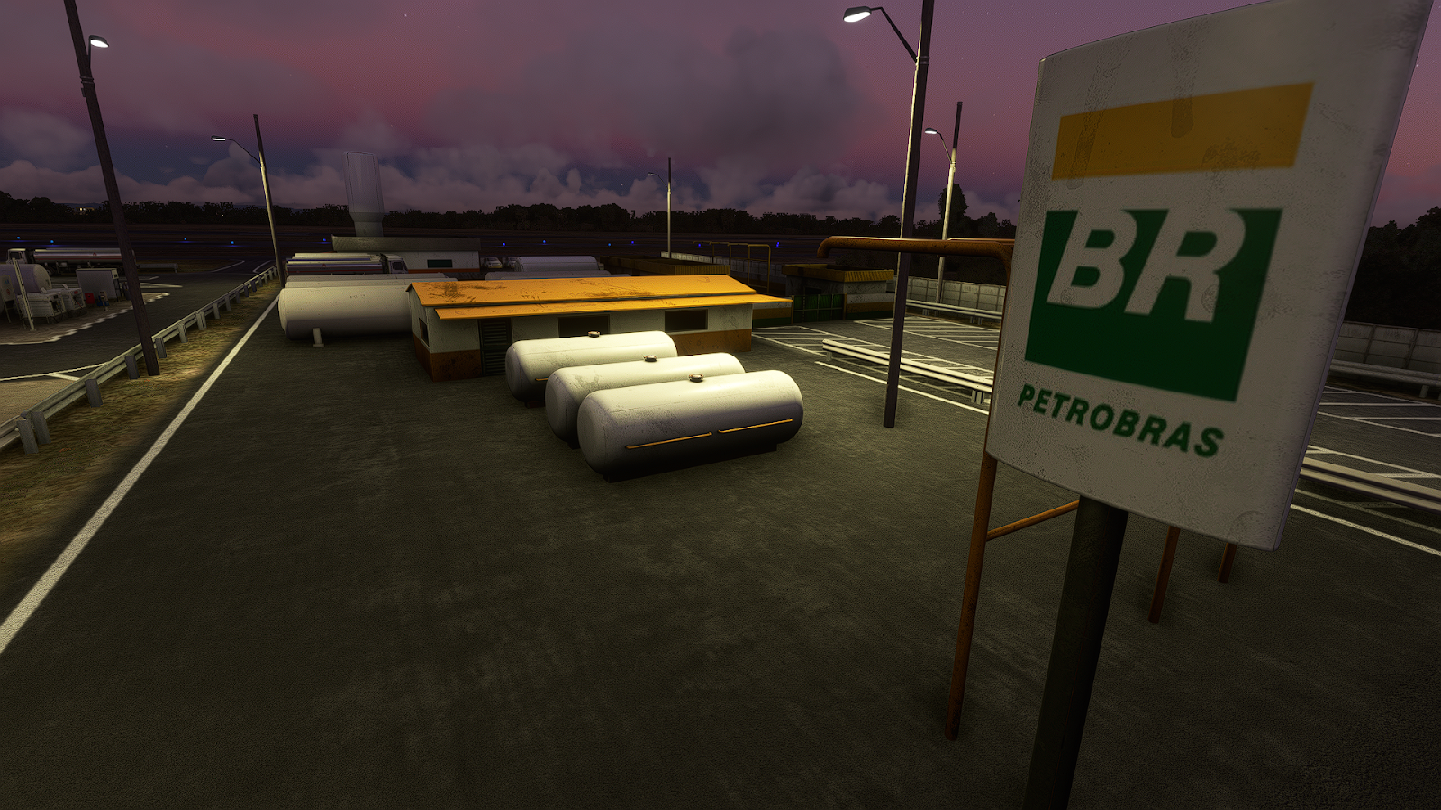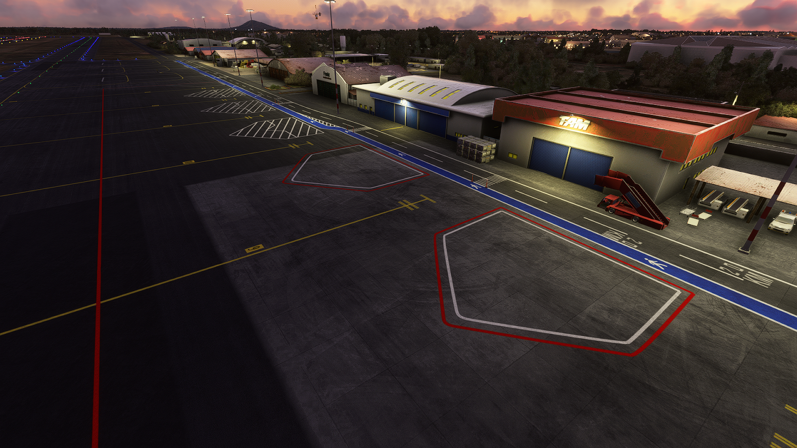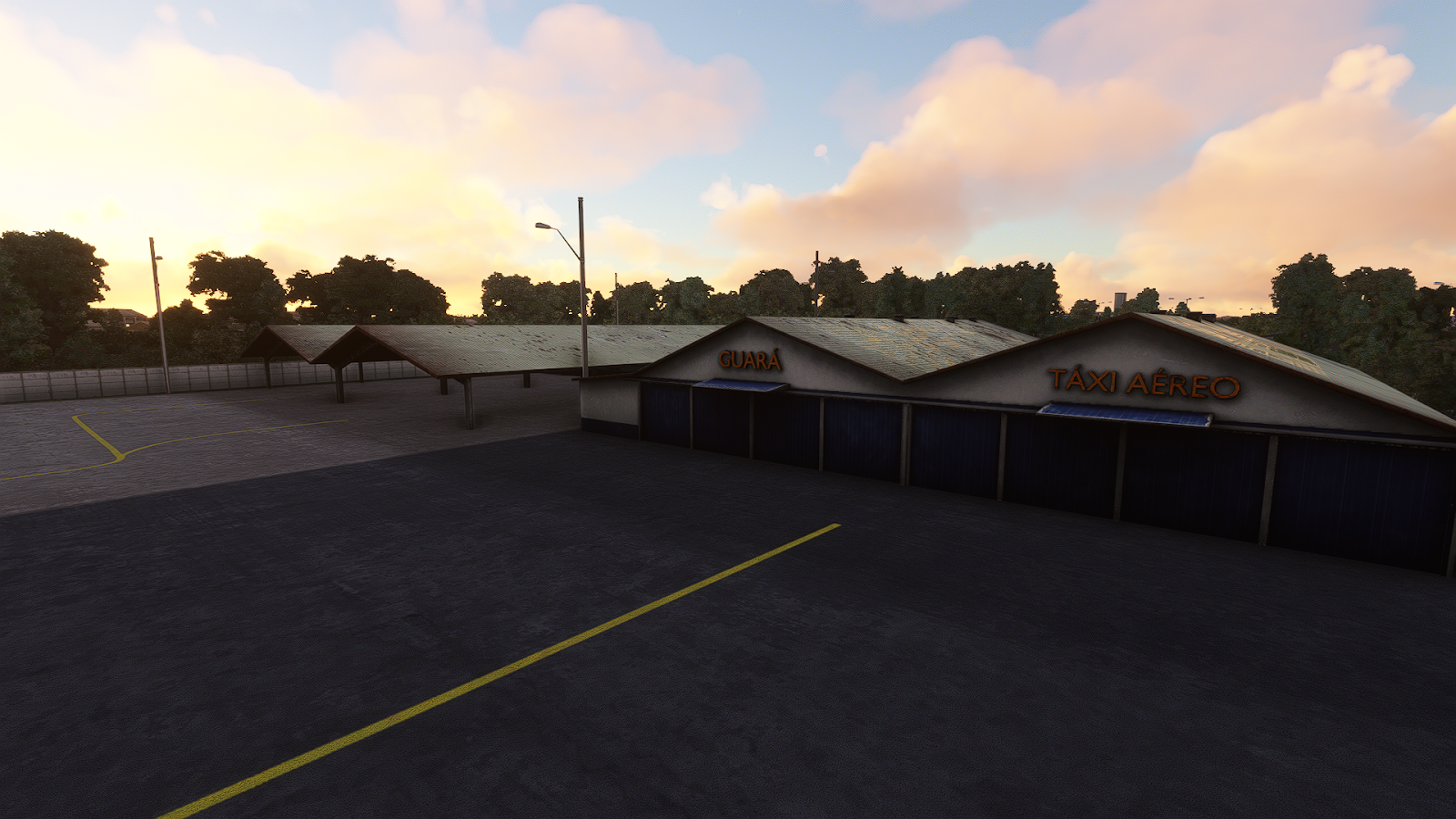 Dozens of other buildings and hangars are also present in the scenery, all with high-resolution PBR textures. The parking lot and surrounding buildings are also included in the package.