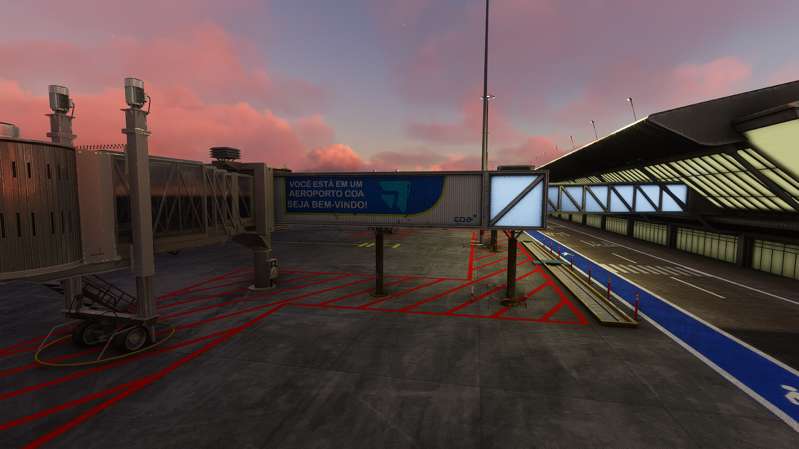 The textures on the taxiways, lane, and terminal are customized with rubber markings and broken taxiways in some areas, and are less detailed than the other textures and look a bit like the default MSFS texture. Nevertheless, I am still enjoying the use of this beautiful scenery.