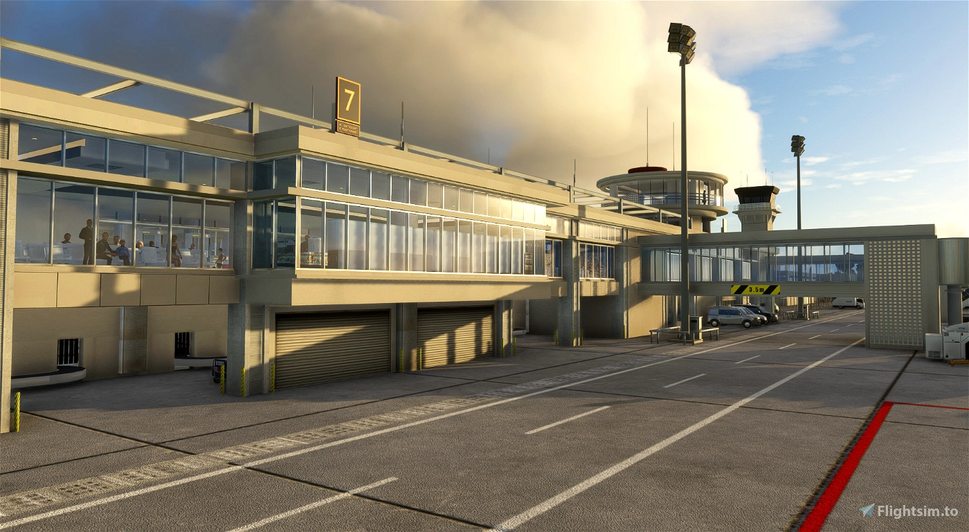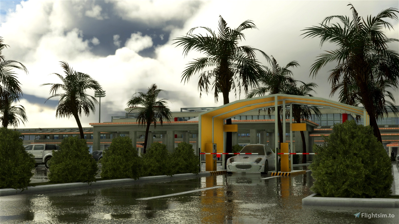 • Realistic landside with Rental Car Area and parking