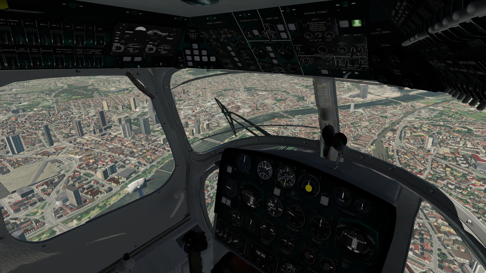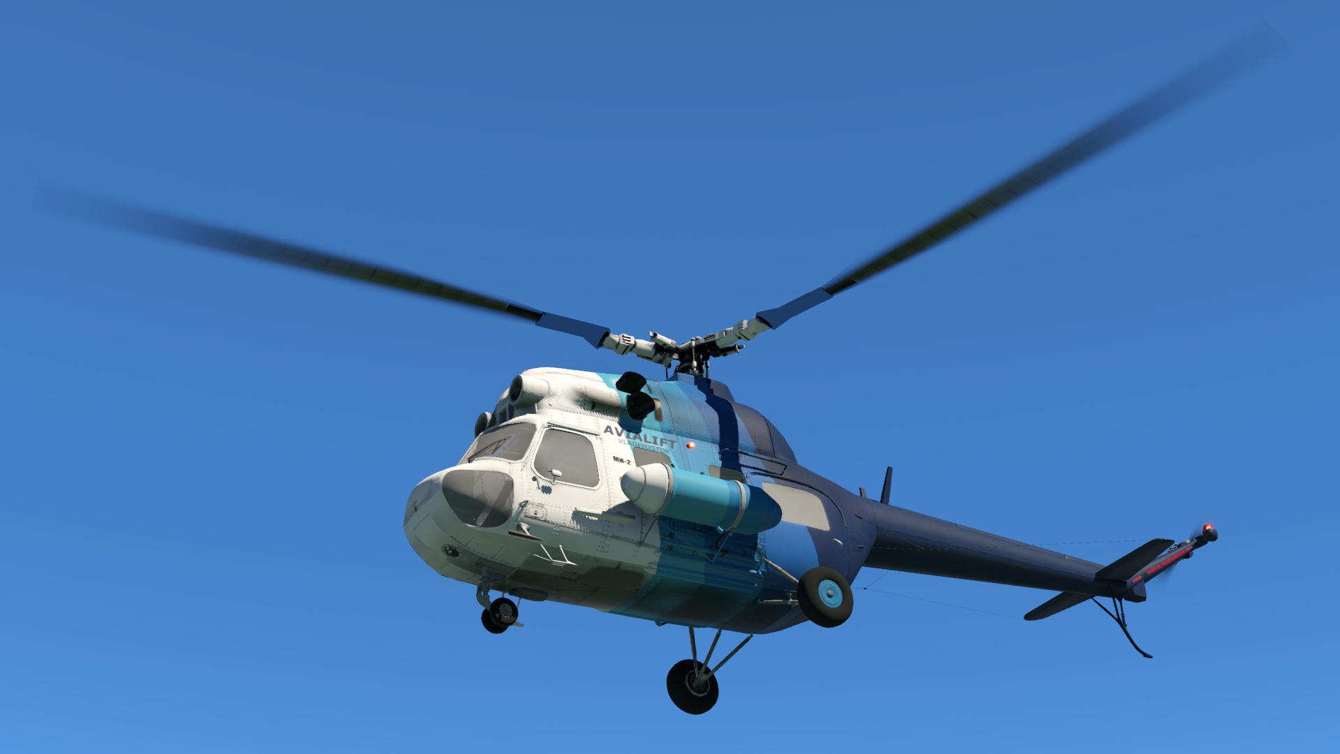 The Mi-2 features a fully modelled 3D cockpit, with a passenger section to boot. The systems of almost every switch and dial is simulated, which is not too common in freeware aircraft. Instrument dials and lights respond to these custom systems, which are powered by SASL to offer plenty of realism – which Sergei has clearly taken advantage of.
