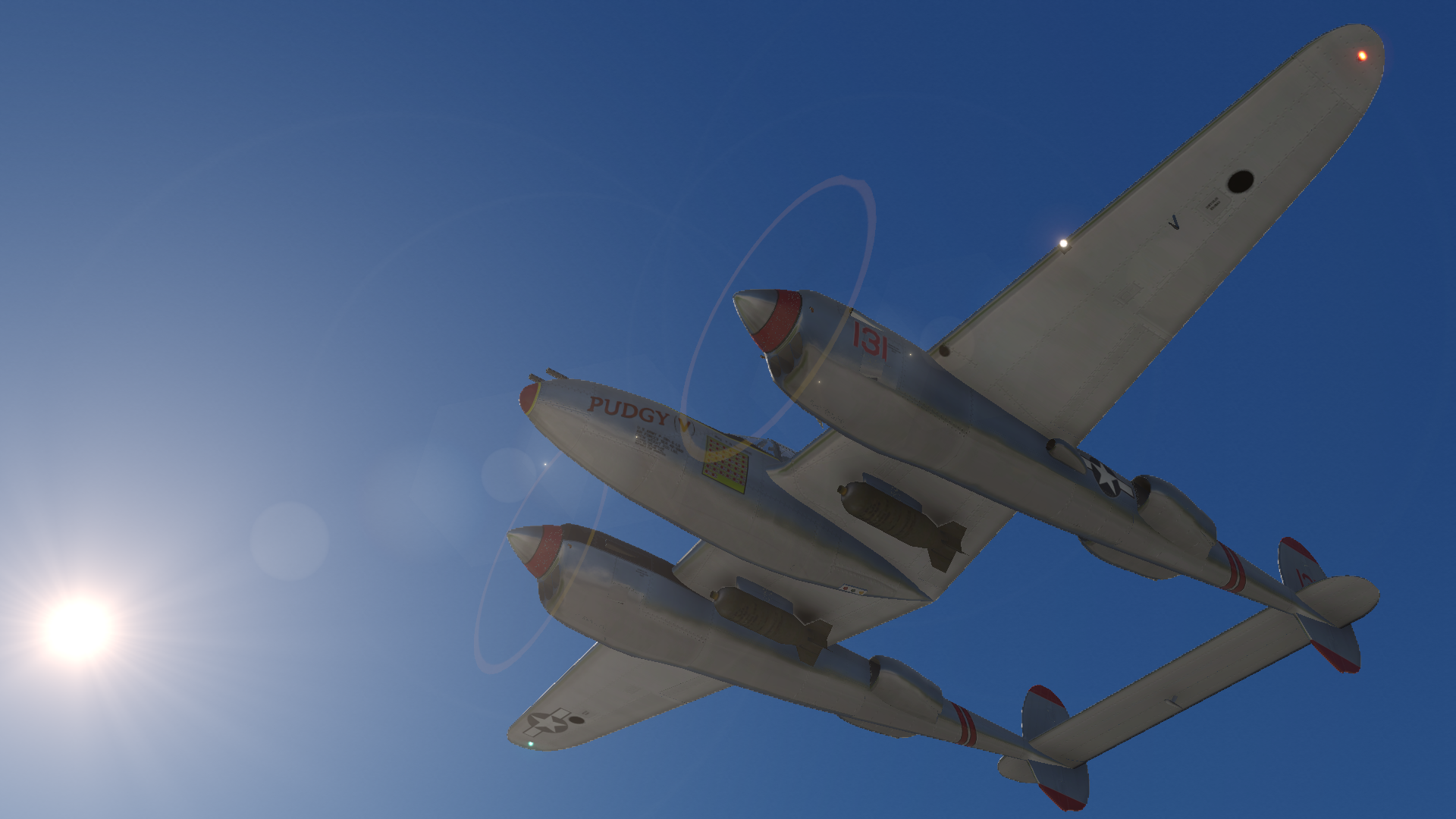 Equipped with guns, a cannon, missiles and bombs, the P-38 has something for every situation. Weapons can be armed individually, and fired using X-Plane’s weapons controls (assigned in joystick/keyboard settings).