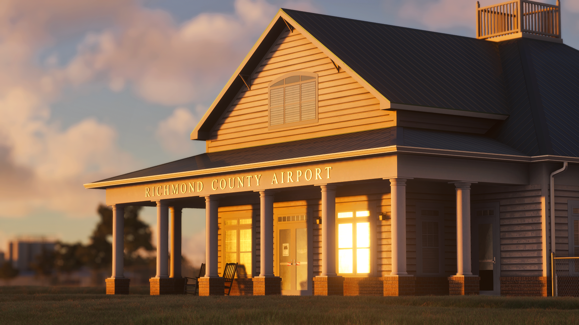 The main office of the airport is modeled with great attention to detail. The rocking chairs and the “Richmond County Airport” signs add to the scenery and make it stand out.