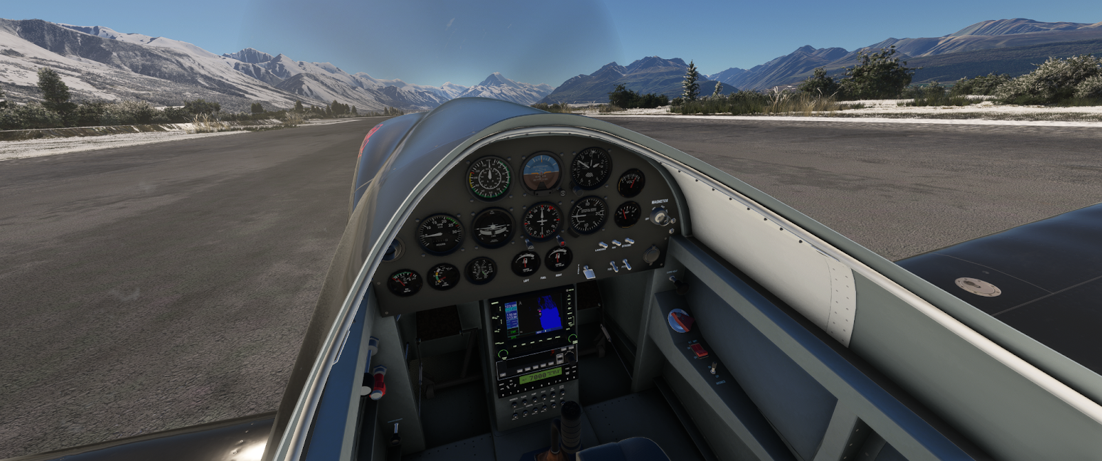 The aircraft is available in the OG version, with analog instruments and a GNS530 to help with navigation. It has an autopilot if you prefer long instrument flights, as its range of around 700nm leaves nothing to be desired.