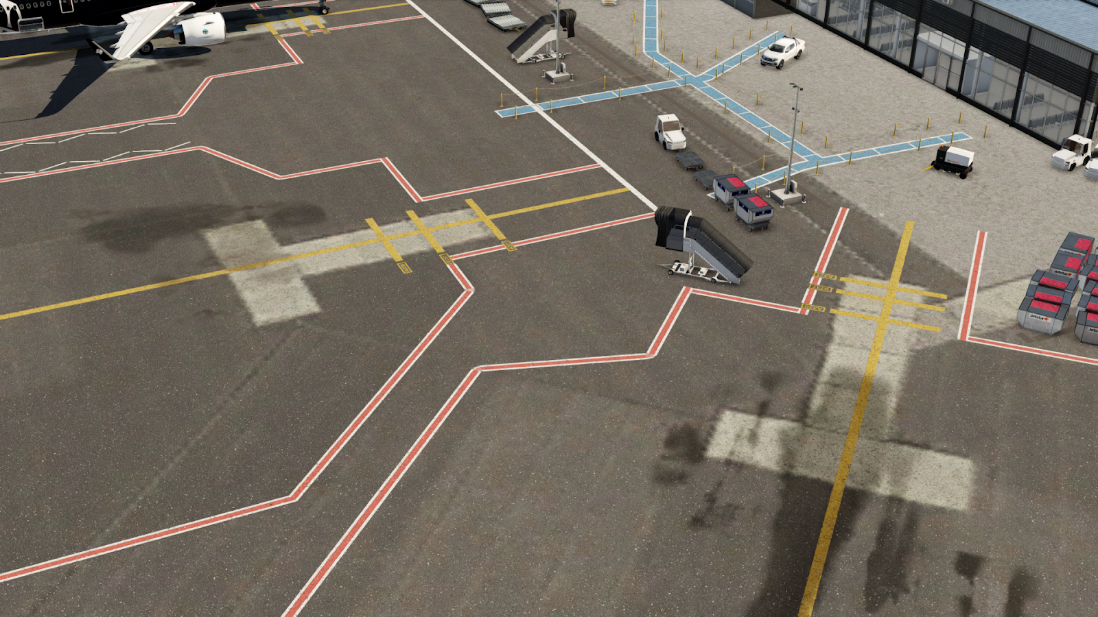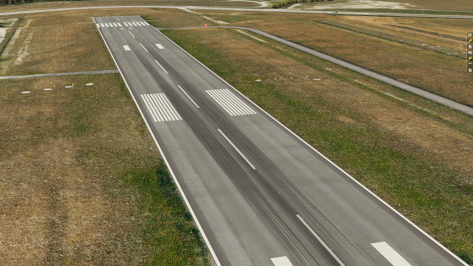 - Hand-made ground polygons with crisp, bespoke texture sets (Runways, aprons, paths, roads)