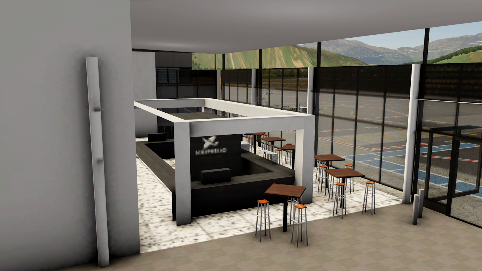 Moving into the airport, the team has done a great job at modelling the interior of the airport. Especially in regards to the front portion of the airport, where all of the airline check-in desks are located. As we move around the terminal, we reach the Airpresso Cafe, where passengers can indulge in a hot drink or beverage of their choice before their flight. All around, the interior textures of the airport are not great. Logos lack quality but objects such as chairs and tables are of better quality. To be fair, nailing interior textures is a difficult task as they are seen when simulating flights and I think it is great that iniScene has even added an interior as a lot of developers skip this and it adds that extra sense of realism to the whole experience.