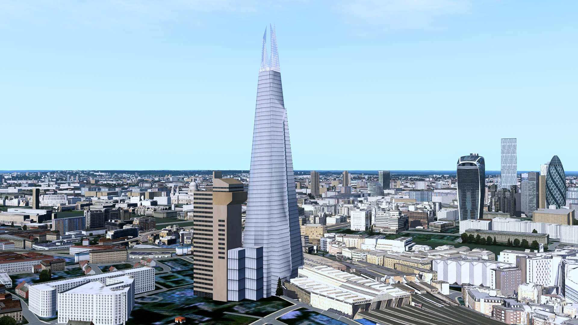 One qualm I have with the VFR objects is the representation of the Shard. Although it is undoubtedly a hard building to model (with all its different pieces), it just doesn’t match the standard set by other objects in the scenery. I’ve attached a screenshot below to help explain my point: it looks as though the building only uses one or two textures and is in general in lower quality than the surrounding buildings.