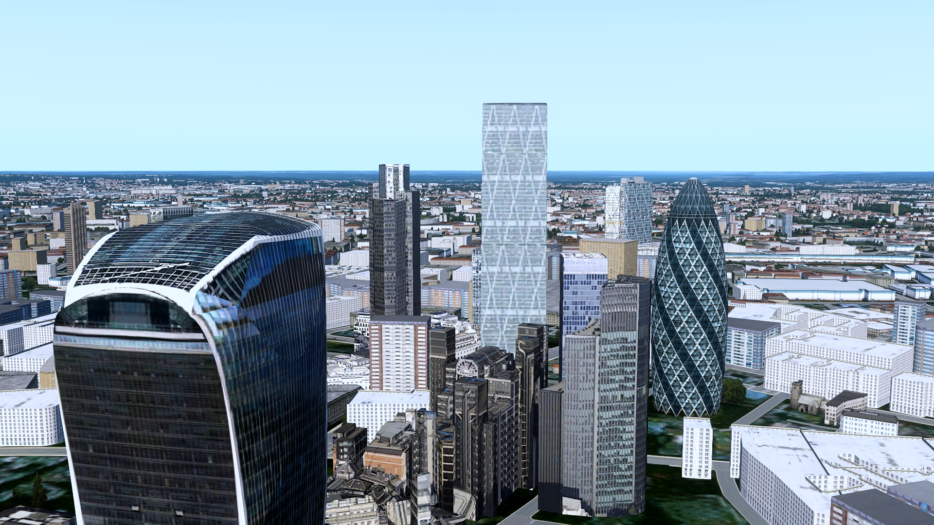 The Gherkin is represented in good detail, however this can conflict with the lower textures of the surrounding buildings.