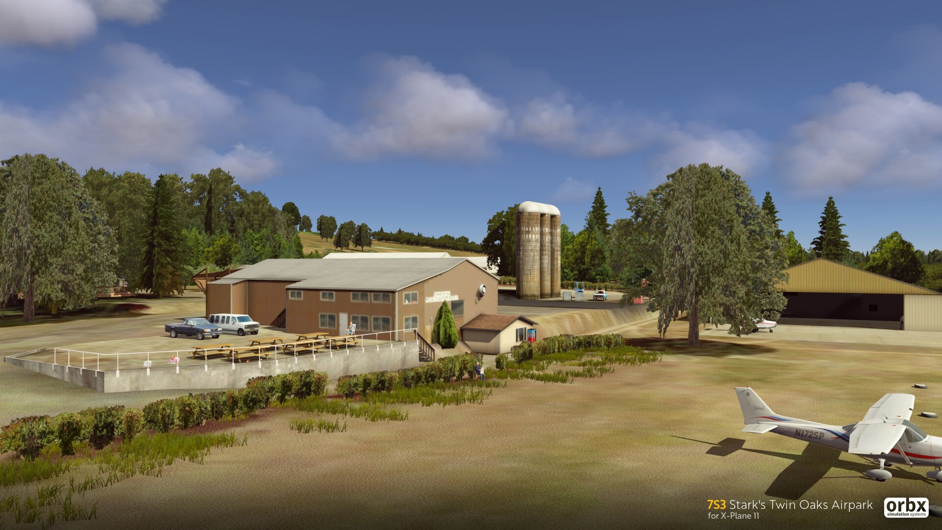 Another Bill Womack airport makes the jump to X-Plane with Stark’s Twin Oaks Airpark. Venema describes 7S3 as “ideally located for sightseeing in the Pacific Northwest. The rural location makes for less traffic and a relaxed atmosphere, while providing an easy jumping-off point for flights to either the coast to the west, or the rugged peaks of the Cascade range to the east.”