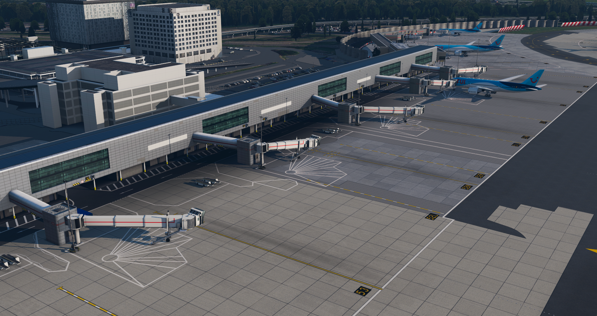 • Custom 3D terminal buildings, including complex high-quality renditions of north and south terminal