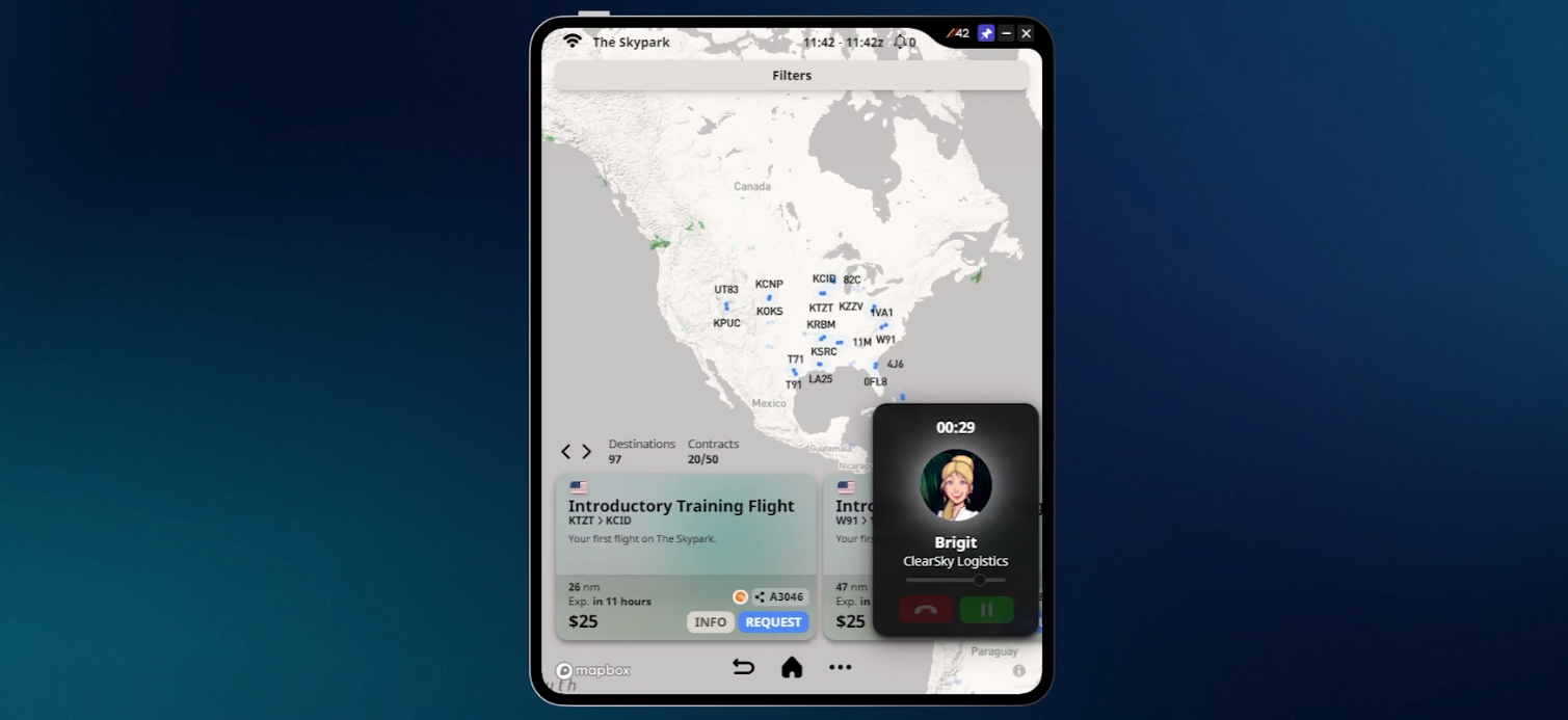 The ‘Conduit’ app is where you are able to see the contracts you have already selected. The information displayed ranges from flight details to checklists and keeps track of all of your past contracts as well.