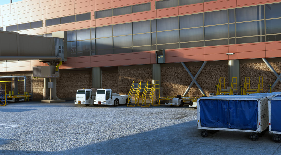 The scenery features an accurate rendition of the airport, with custom animated jetways, sharp PBR textures, VDGS on every gate, high-resolution orthoimagery around the airport, hand-placed vegetation, performance-friendly optimization, wear and tear on runways, taxiways, and aprons, and more.