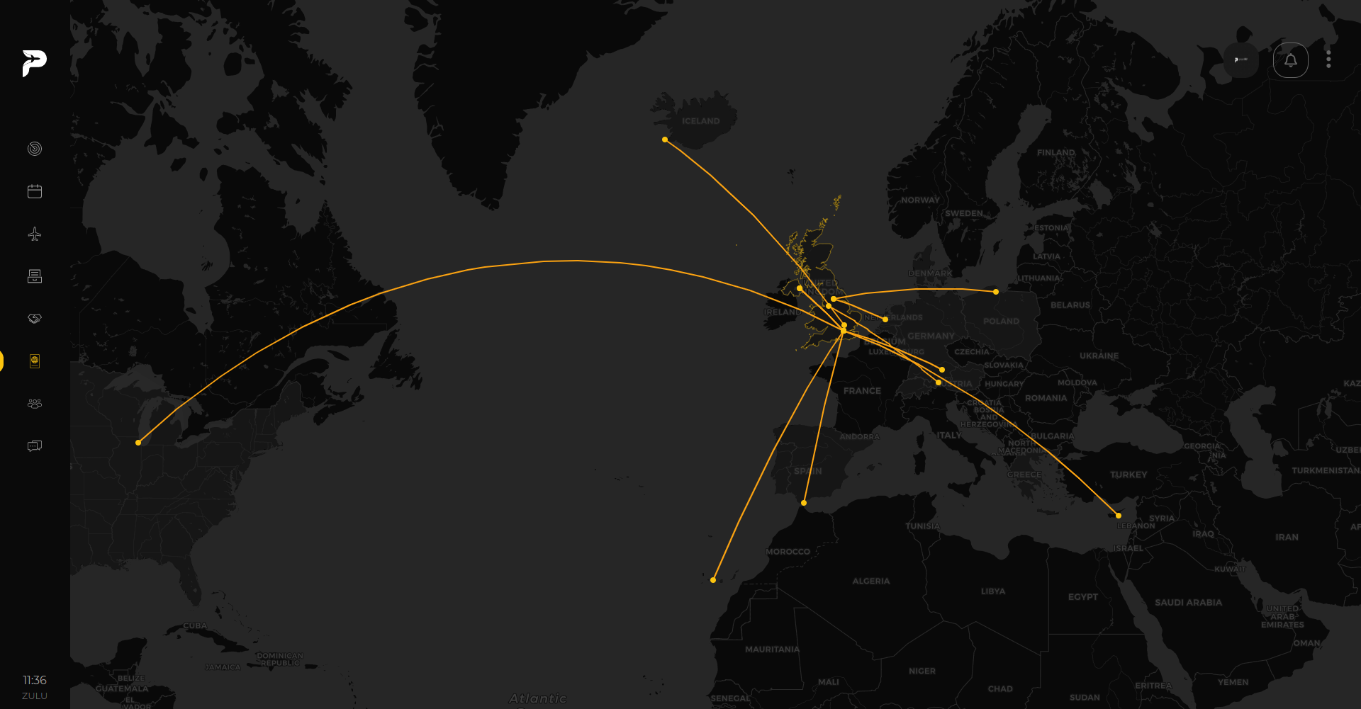 “First of all, the Dashboard. Looks pretty cool, huh! The dashboard is taking over what we called Stratus in the v3 app and it’s got some cool features. The most noticeable one is your landing rate graph, which will show you your last 10 landing rates compared to each other on a graph. You’ll also be able to access your last flights, see the latest available contracts and even see some Achievements and Network planned events!