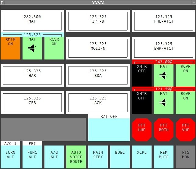 “The VSCS panel data is automatically populated from the server based on the position you select at login. No extra configuration is required other than selecting which transmitters you want to activate. In the example below, we have set up a single frequency with multiple transmitter locations.”