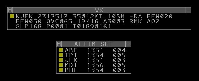 POSCON’s Radar Client allows for user adjustment of target updating, as different airports have different refresh rates. Also provided by POSCON was a screenshot of their WX and ALTIM set panels.