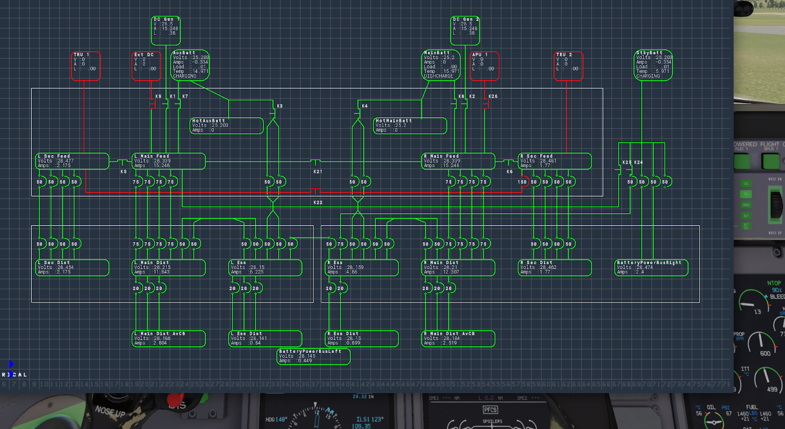 The left side of the cockpit is home to all 360 circuit breakers, some are also simulated in the nose of the real plane, but you can’t get to them. FlyJSim has gone the extra mile by modelling and animating all of them with, pilots are welcomed to try and test their skills by popping a selective breaker. Although they may all not react like the real aircraft, Jackal has confirmed that: “they work, and all systems go through them, but no one has tested to make sure that cascade failures are correct.” The image below shows how the white box outlines where each function is. The top section is all systems found in the nose, and the two bottom white sections are found in the cockpit.