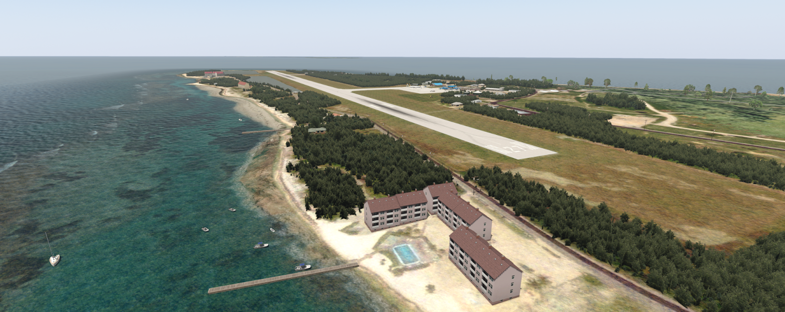 The first scenery released today takes us to Marathon, Florida, a small town located just South of the mainland along a strip of land leading to Key West. The airport comes complete with 3d grass and vegetation accurately placed along with PBR for the HD Ground Textures and 3D modeled buildings. It even comes included with static aircraft.